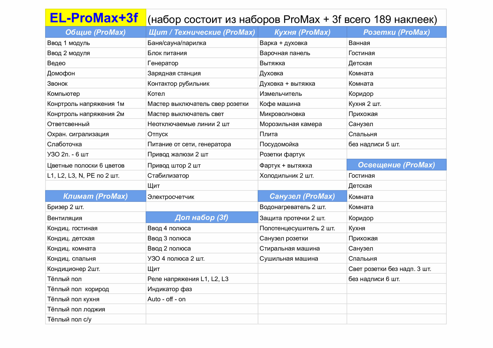 Купить Набор наклеек для электрических автоматов в квартире и доме ProMax+ 3F
