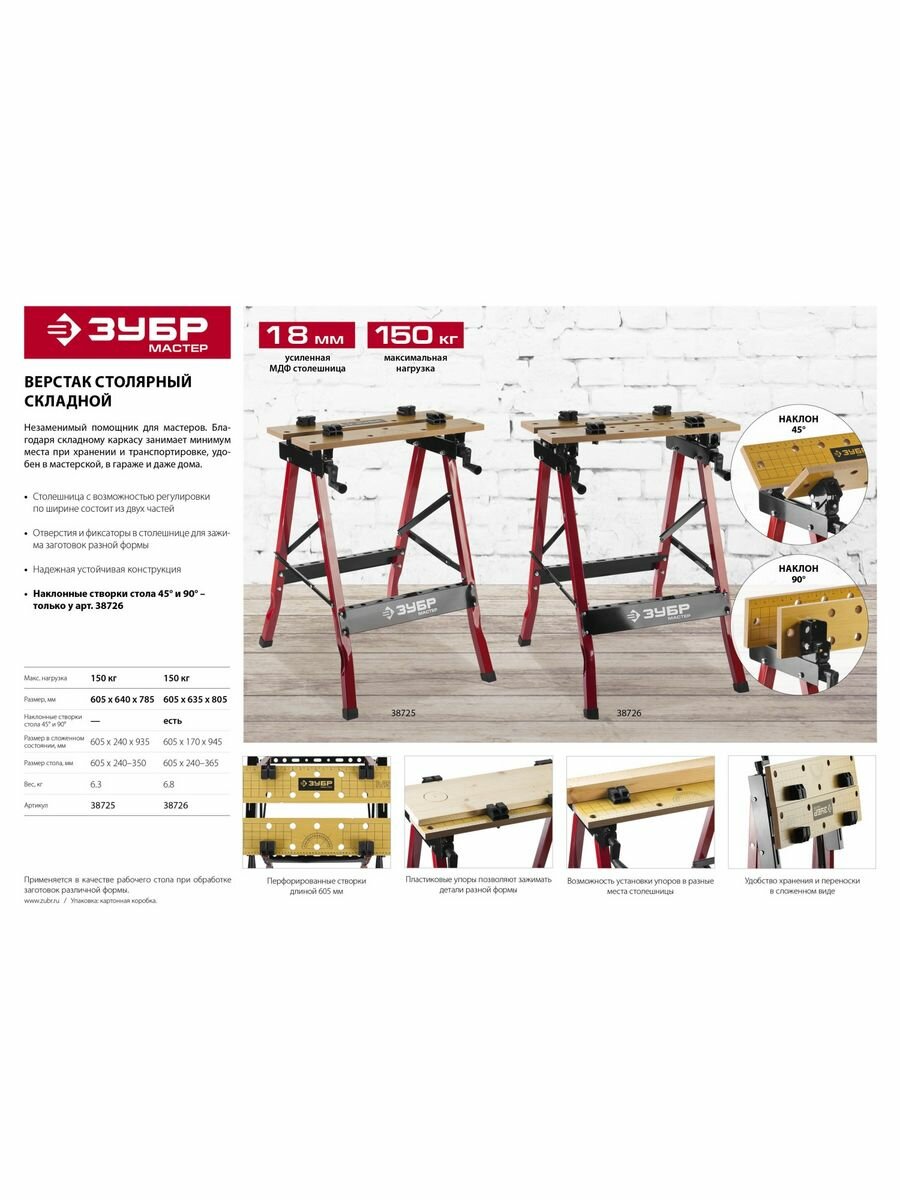 Складной столярный верстак ЗУБР М-500 605 х 635 х 795 мм 38726 интересное: