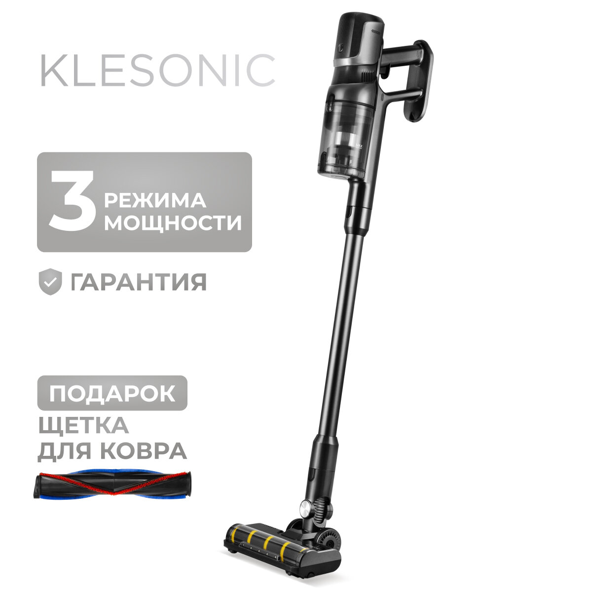 Пылесос Klesonic, беспроводной, вертикальный, BLDC-двигатель, 3 режима мощности