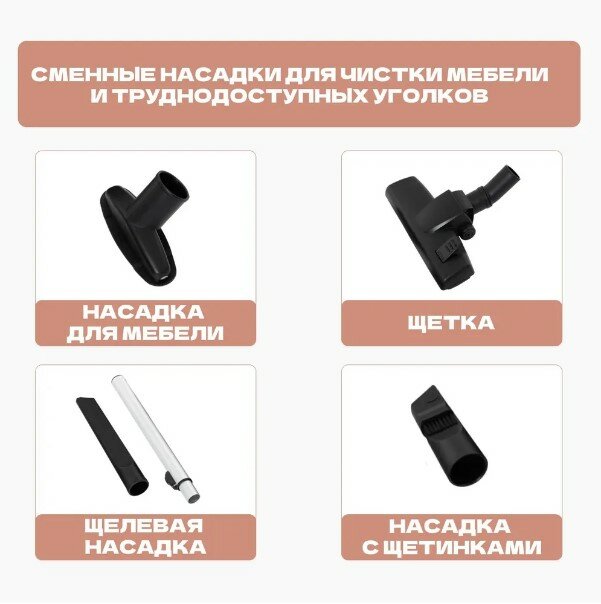 | В комплекте | насадка для мягкой мебели, насадка для удаления шерсти, щелевая насадка |