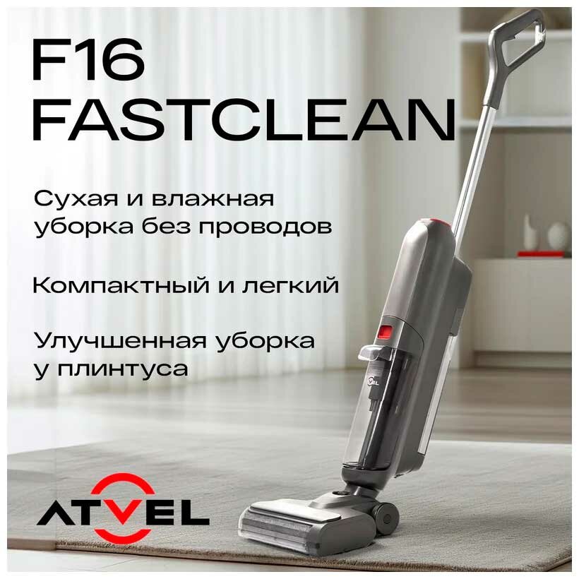 Купить Моющий пылесос беспроводной вертикальный для дома Atvel F16 FastClean, с двумя щетками, сухая и влажная уборка, самоочистка