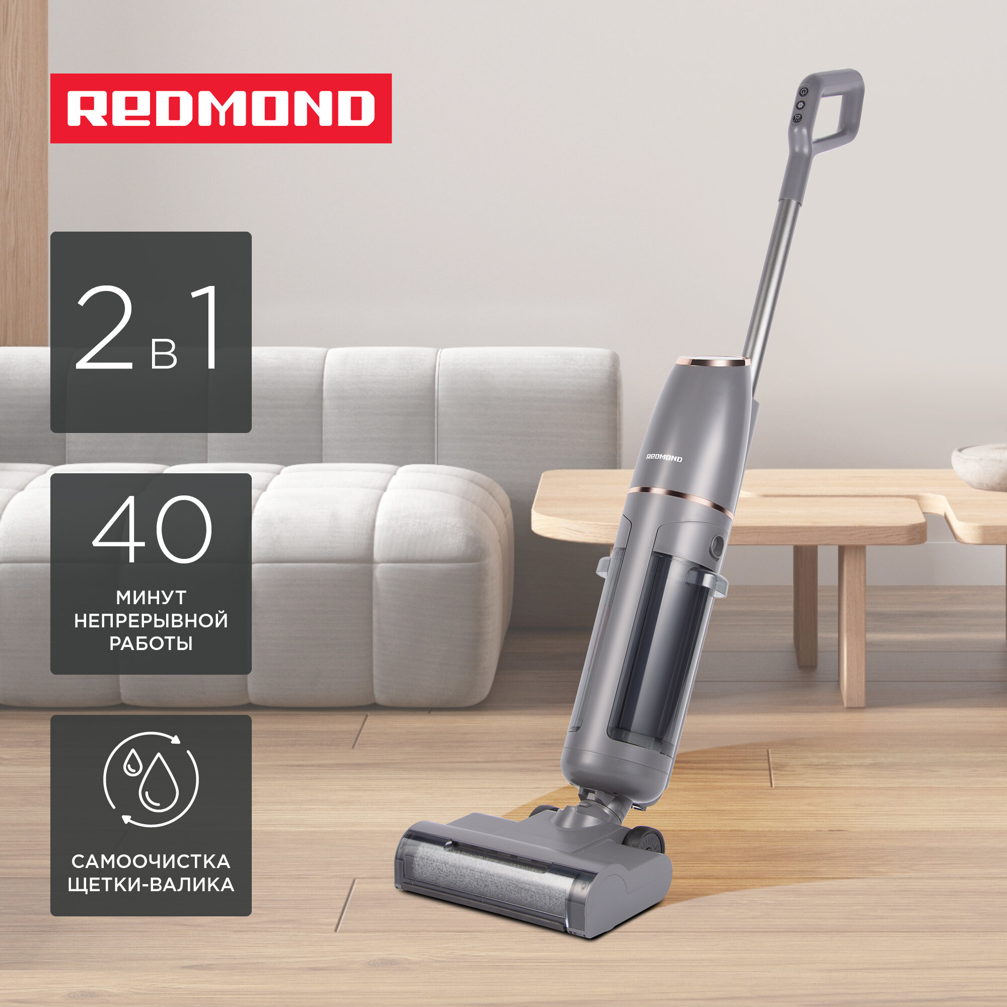 Пылесос моющий беспроводной REDMOND MultiClean VH1314, для сухой и влажной уборки