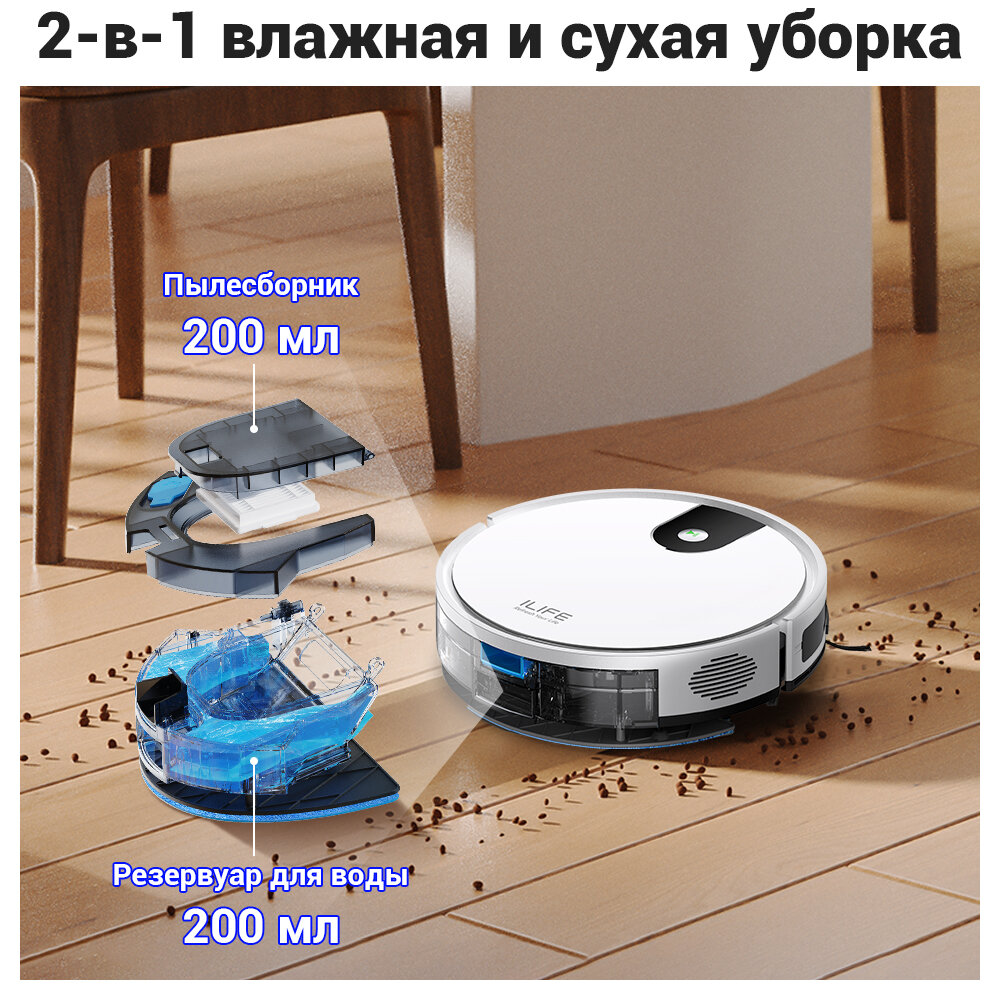 Робот-пылесос для влажной и сухой уборкой ILIFE V9 интересное: