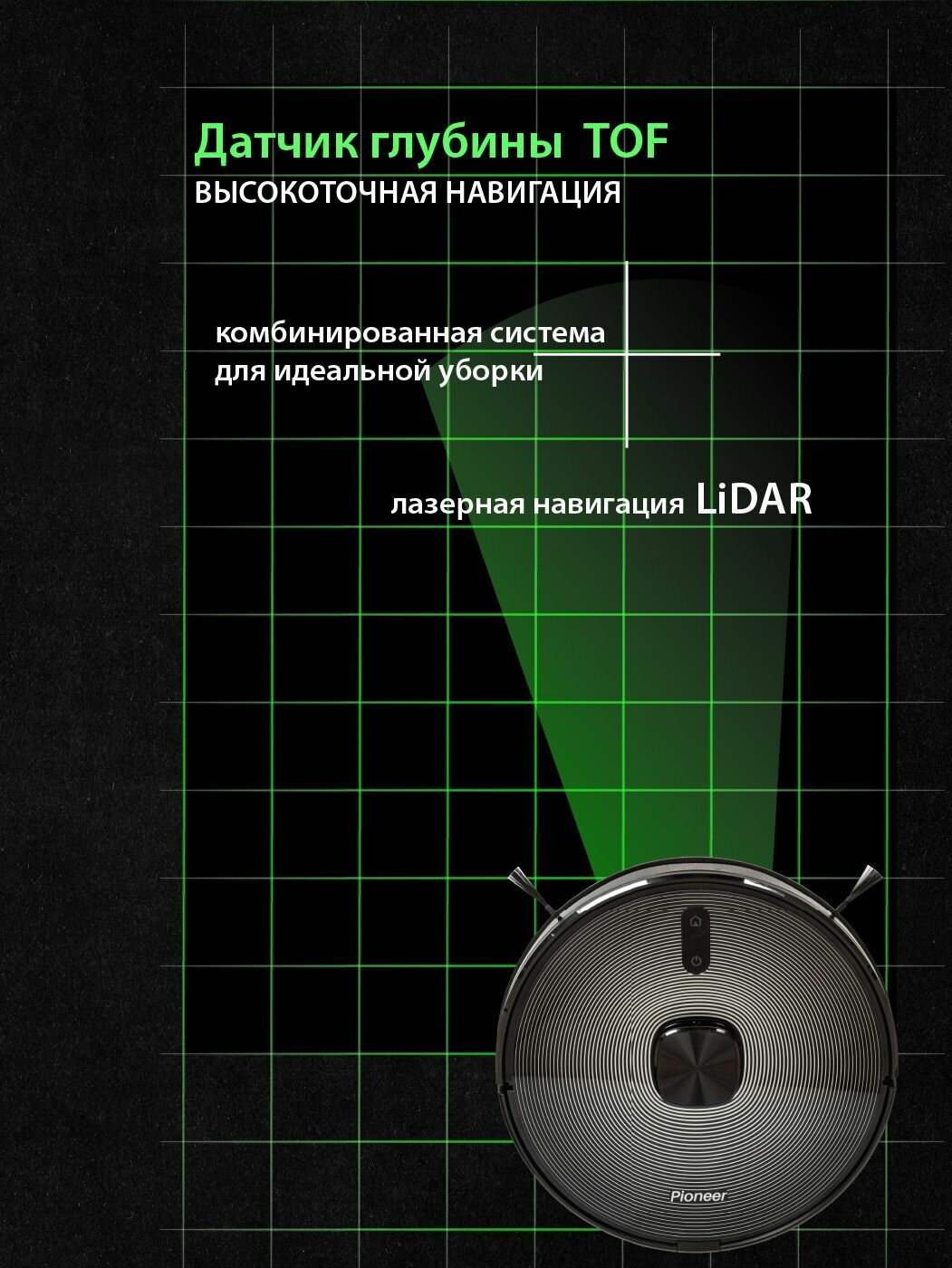 Робот-пылесос Pioneer VC725R,black 2 в 1 с лидаром и датчиком глубины TOF (высокоточная навигация), сухая и влажная уборка, NIDEC, автоочистка, SMART LIFE интересное: