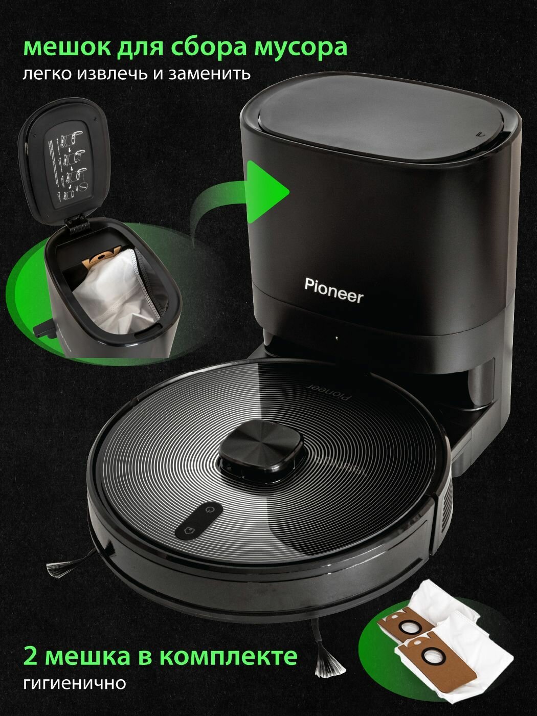 Купить Робот-пылесос Pioneer VC725R,black 2 в 1 с лидаром и датчиком глубины TOF (высокоточная навигация), сухая и влажная уборка, NIDEC, автоочистка, SMART LIFE