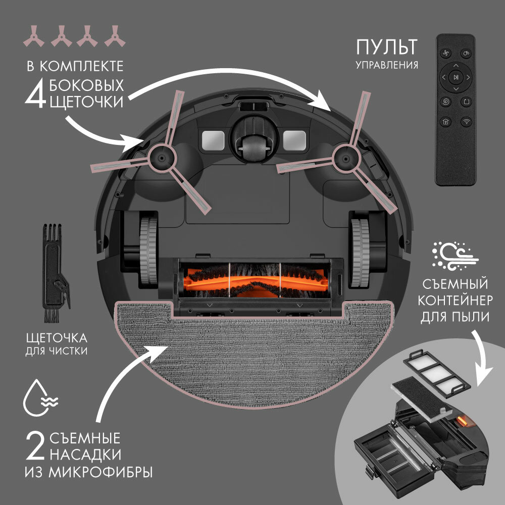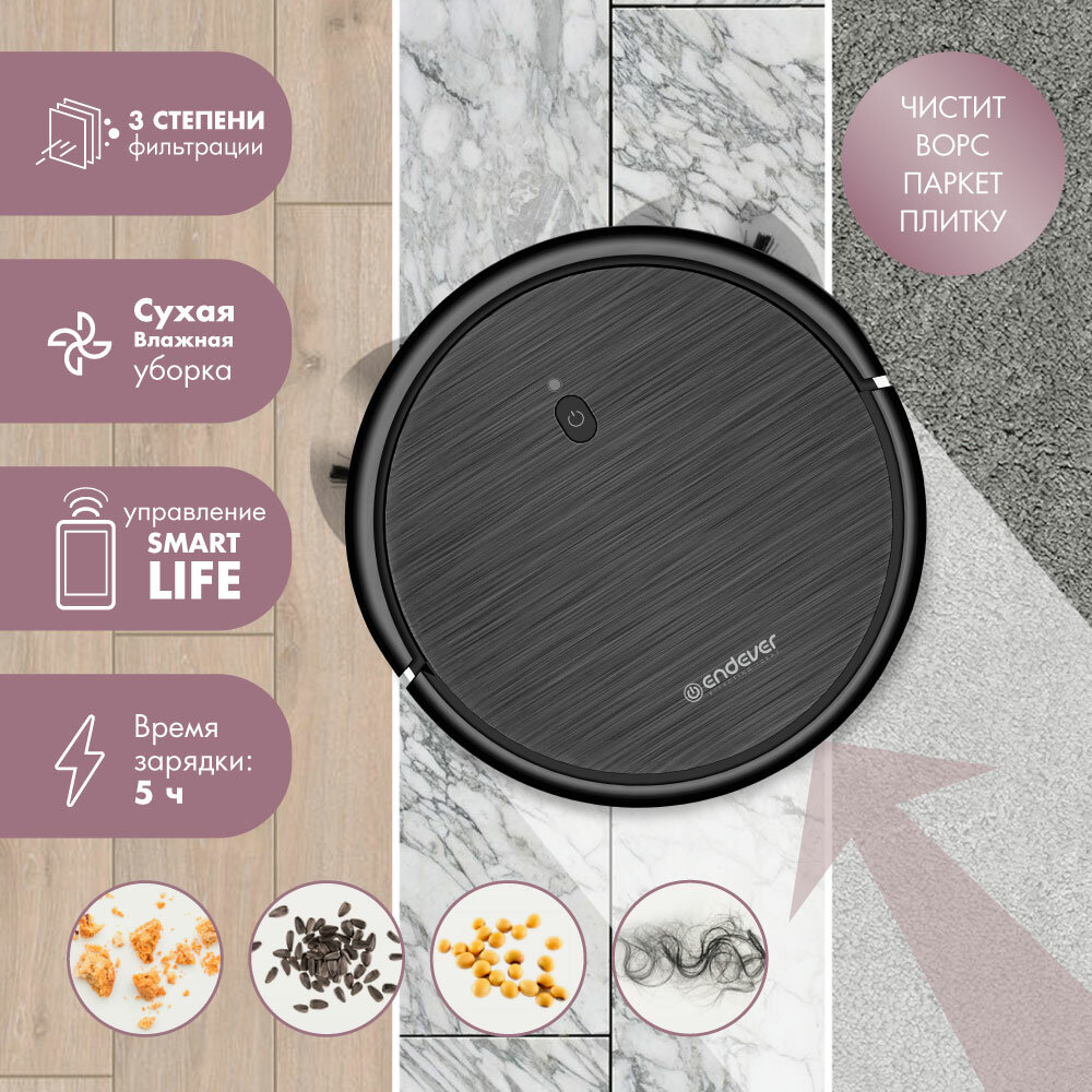 Робот пылесос с влажной и сухой уборкой ENDEVER Spectre-11, сухая влажная уборка, управление со смартфона, тихая уборка