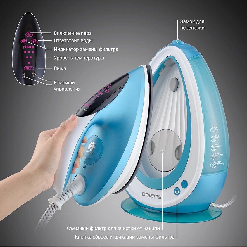 Парогенератор POLARIS PSS 6540K, белый бирюзовый интересное: