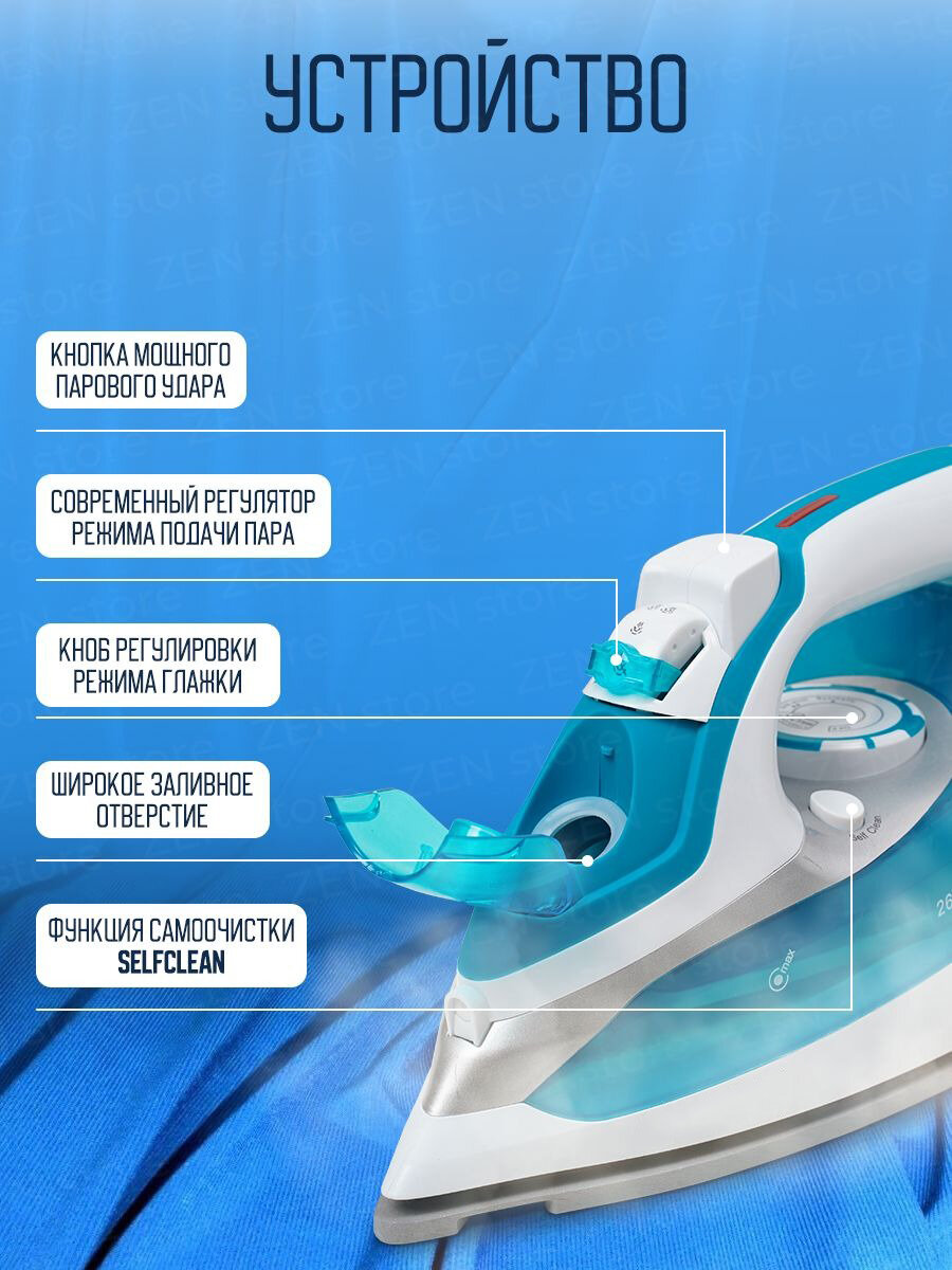 Утюг домашний, паровой,2600 Вт, керамическое покрытие, вертикальная глажка,"паровой удар", самоочистки, с защитой от перегрева интересное: