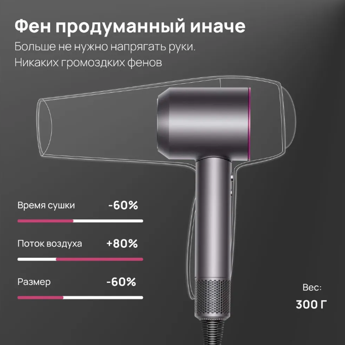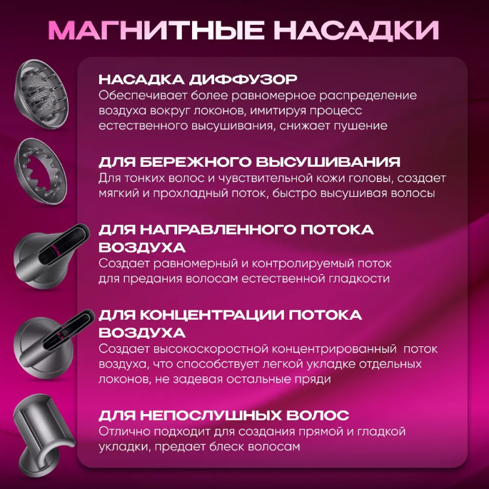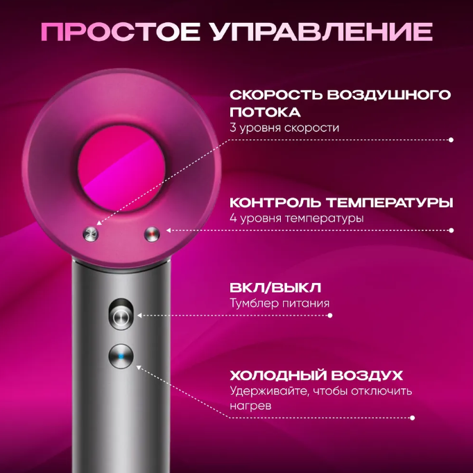 Фен для волос профессиональный 1600 Вт, розовый интересное: