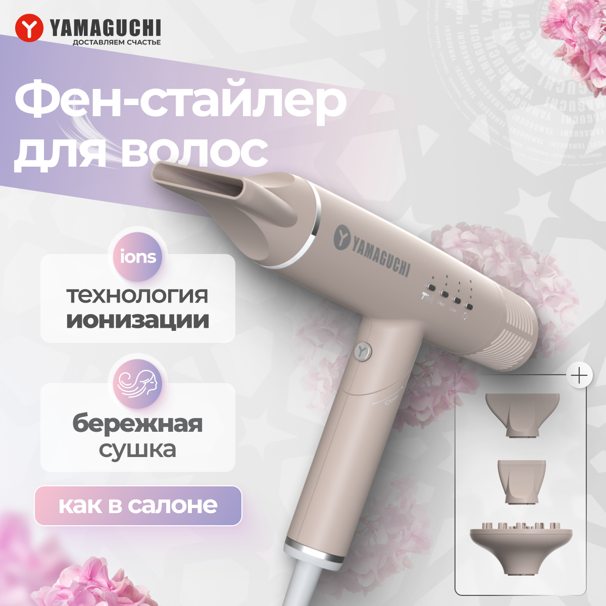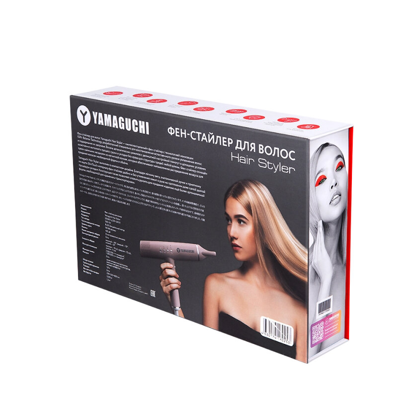Фен-стайлер для волос Yamaguchi Hair Styler, ионизация ION- Balance Technology, 8 автоматических режимов работы