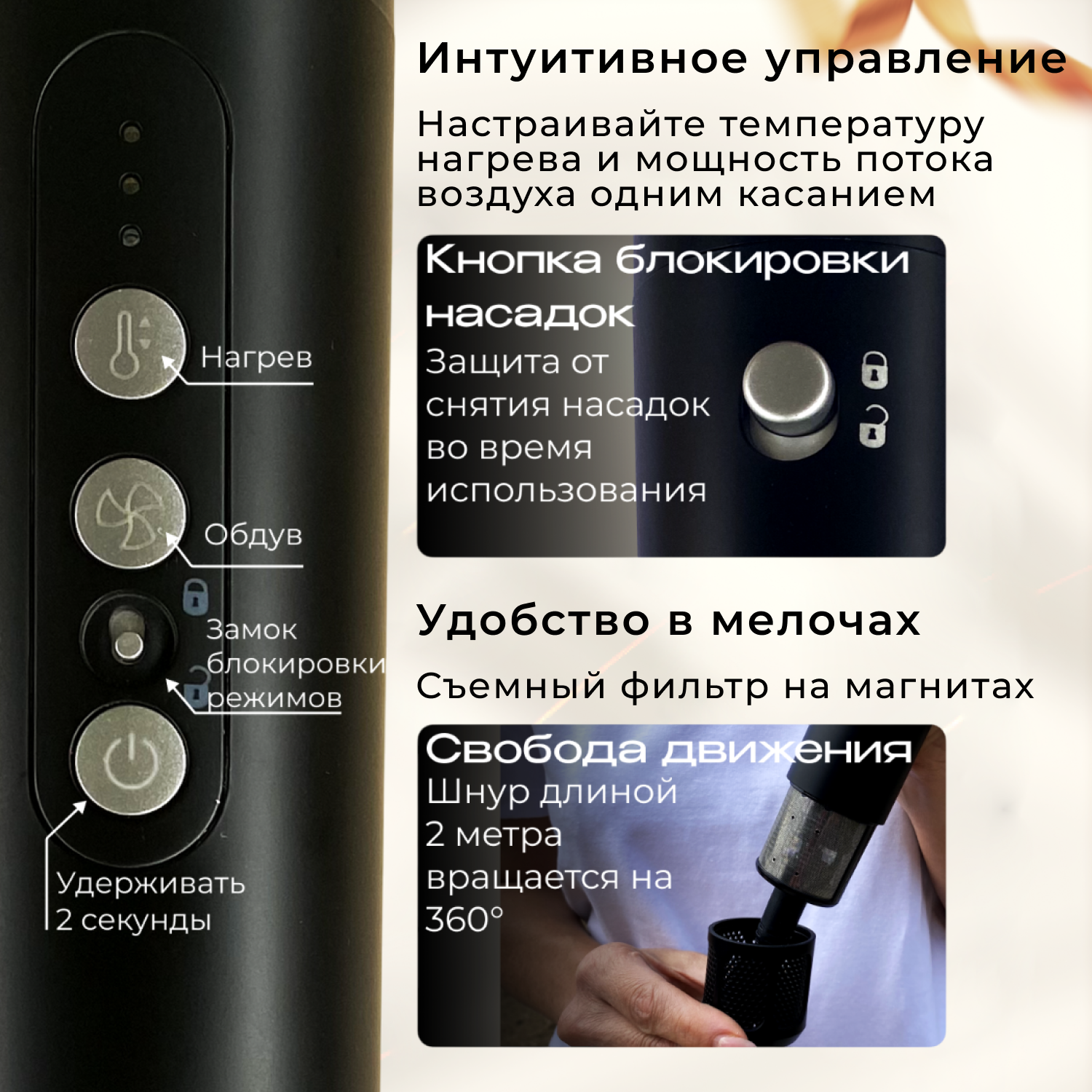 СохранитьФен стайлер Gecht 7 насадок для укладки с ионизацией, черный интересное: