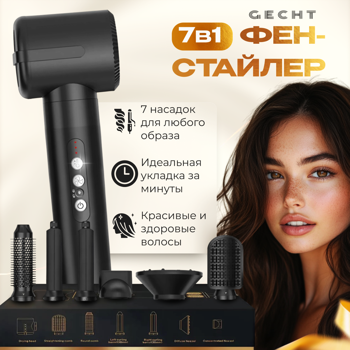 Купить Фен стайлер Gecht 7 насадок для укладки с ионизацией, черный