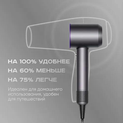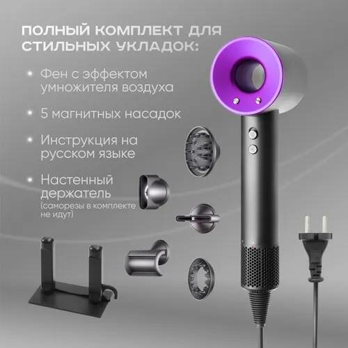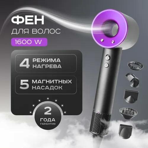 Профессиональный фен для волос iHair-1600 Super Hair Dryer 1600 Вт, 3 режима, 5 магнитных насадок, ионизация воздуха, интересное: