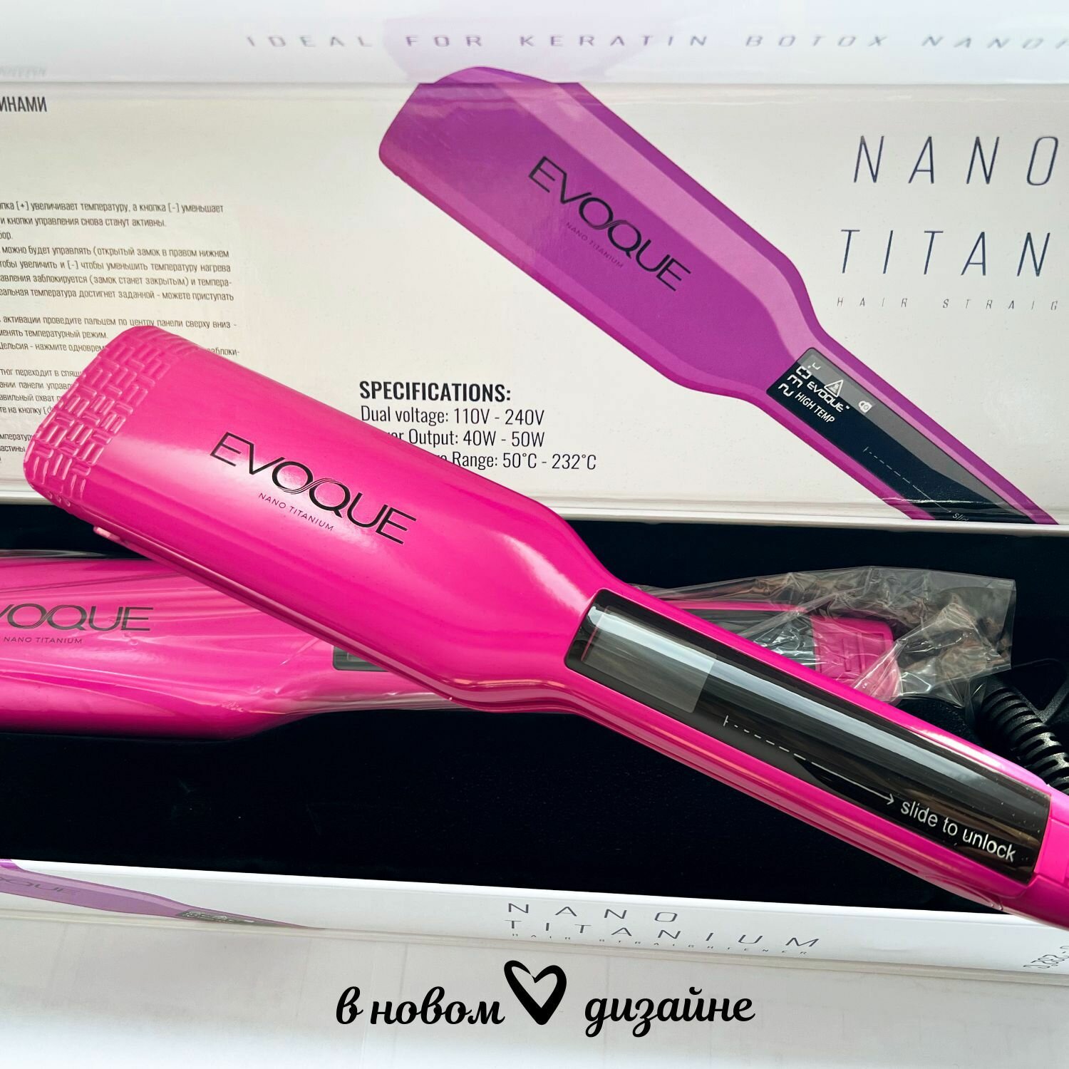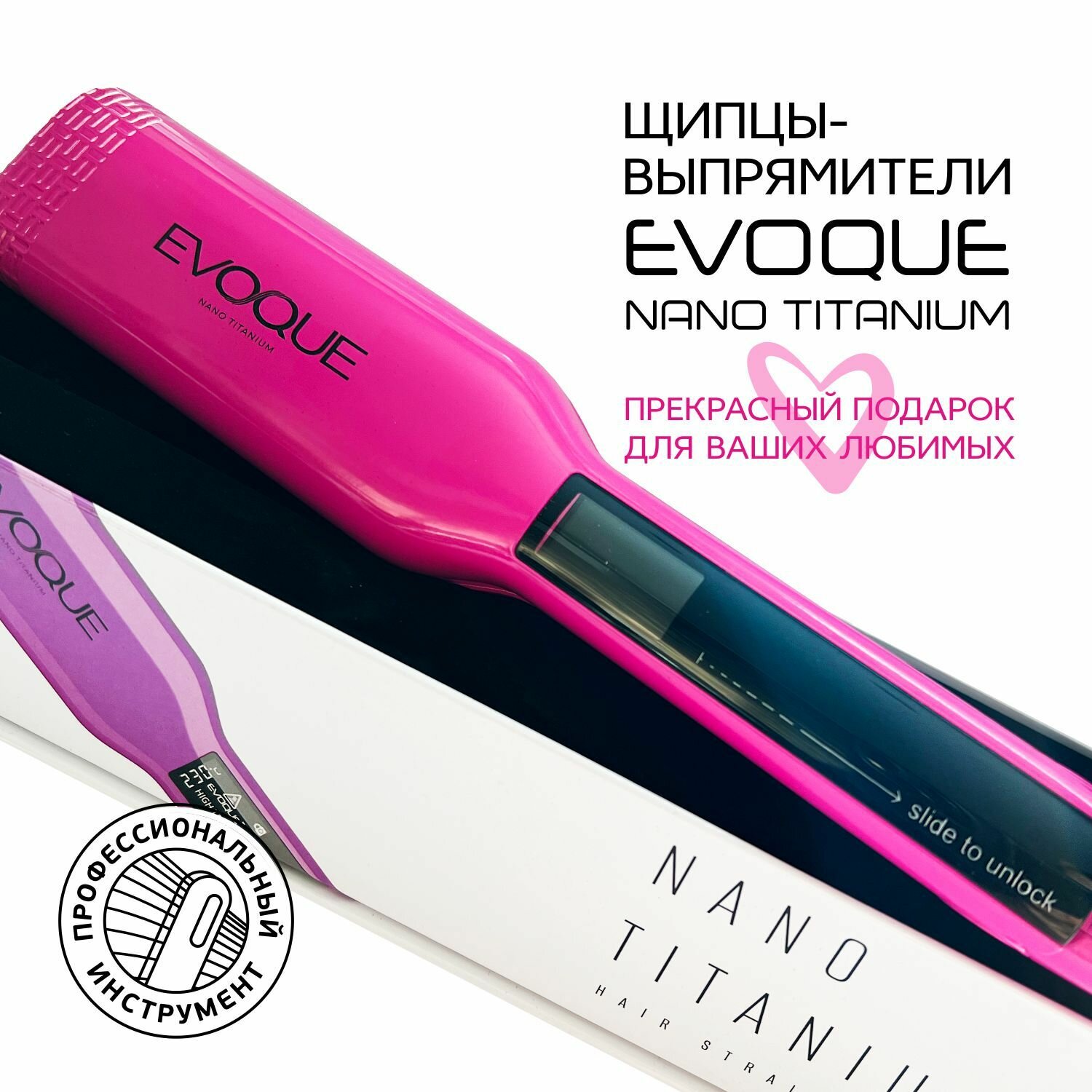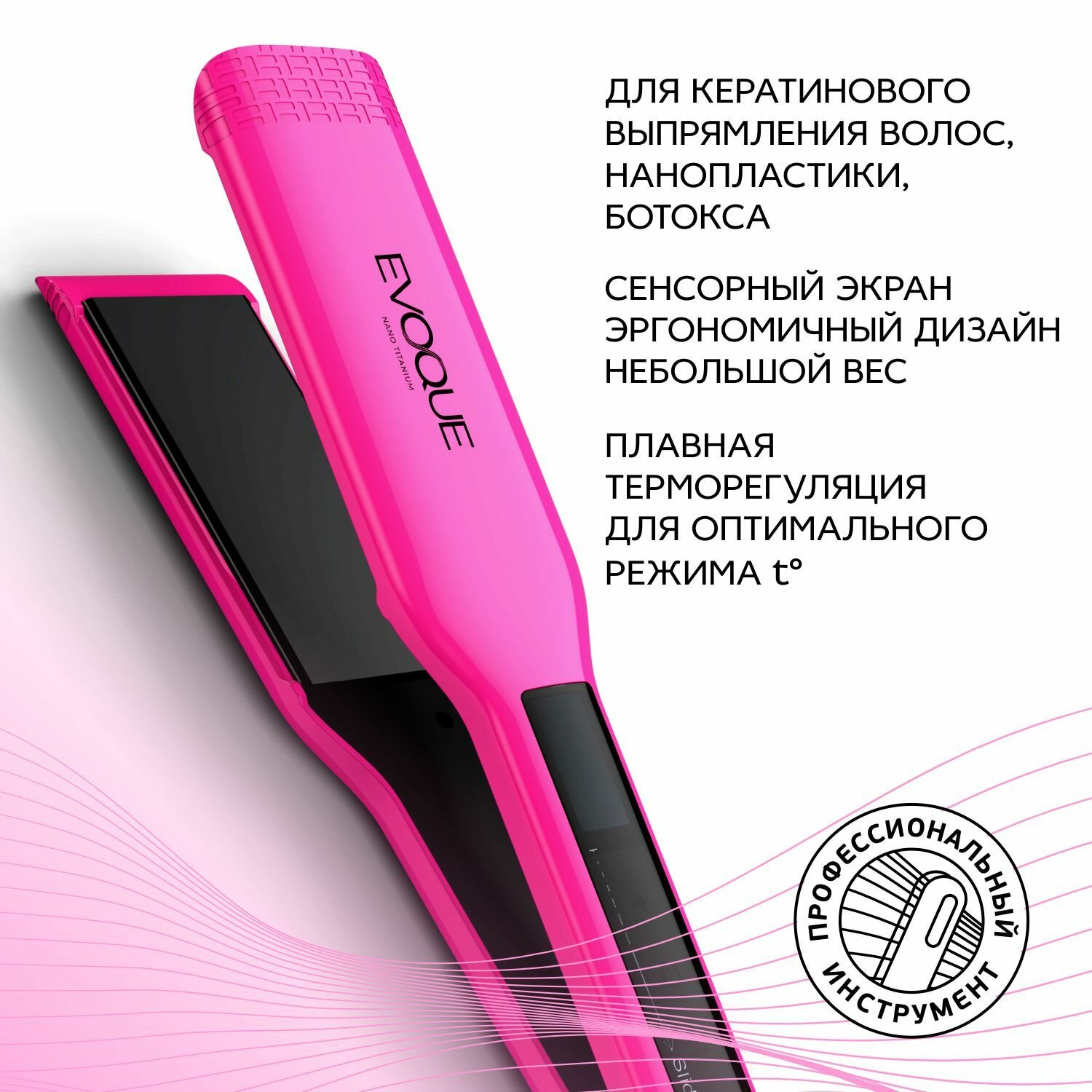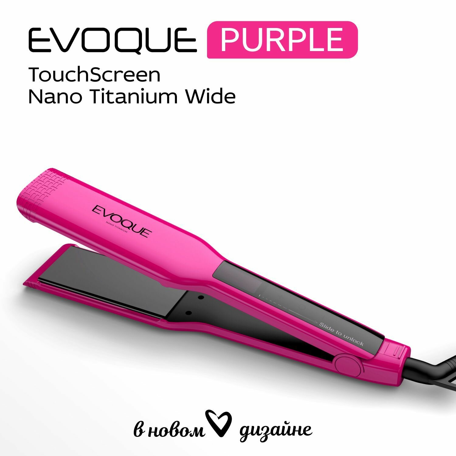 Щипцы-выпрямители с широкими пластинами EVOQUE PURPLE TouchScreen Nano Titanium Wide интересное: