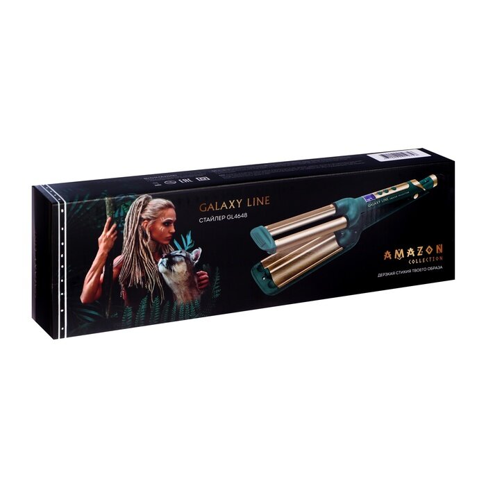 Стайлер Galaxy LINE GL 4648, 80 Вт, керамическое покрытие, d=16 мм, до 230°C, зелёный