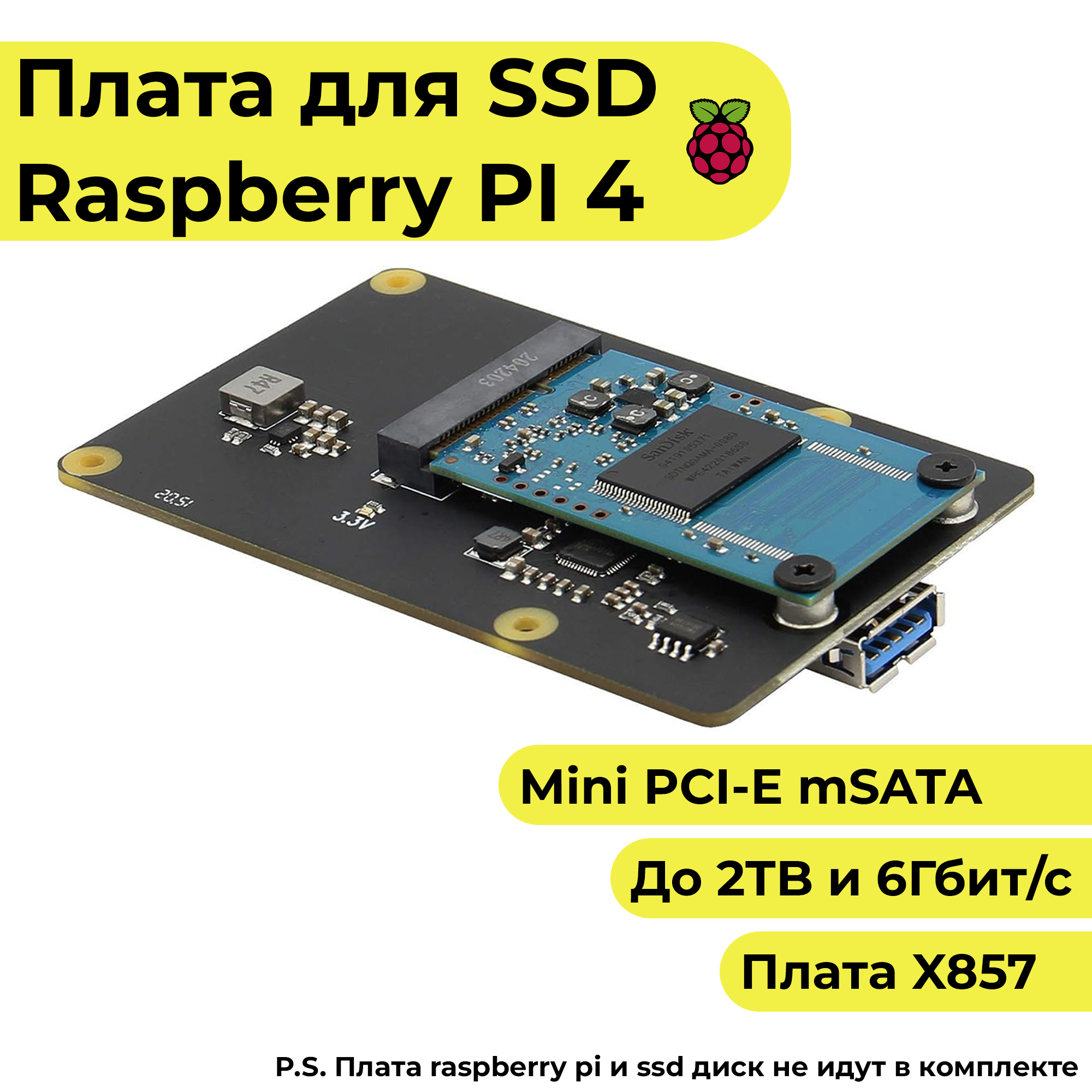 Плата расширения X857 mSATA SSD диска для Raspberry pi / ссд диск для расберри интересное: