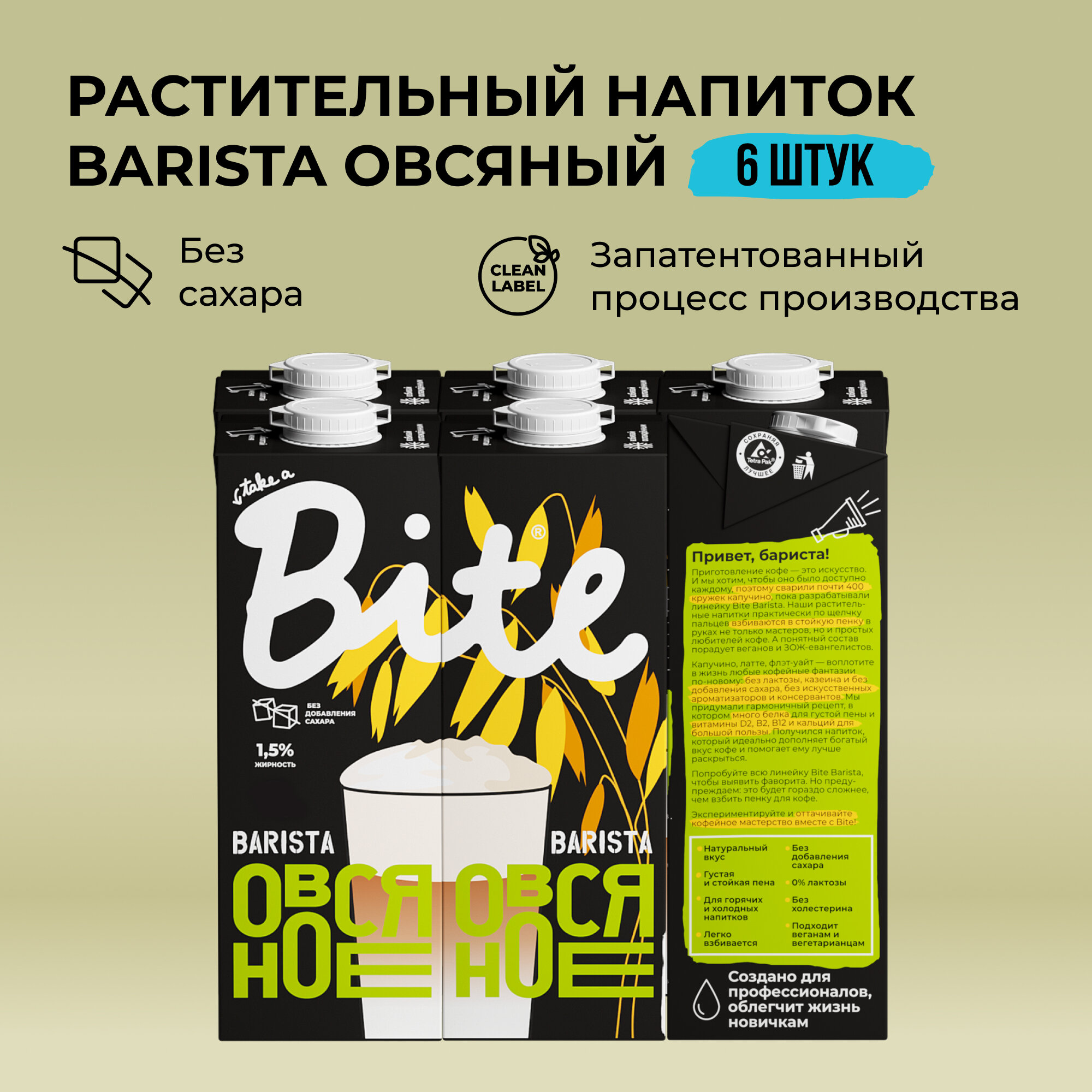 Купить Растительное молоко овсяное Take a Bite, без сахара, безлактозное, 6 шт по 1 л