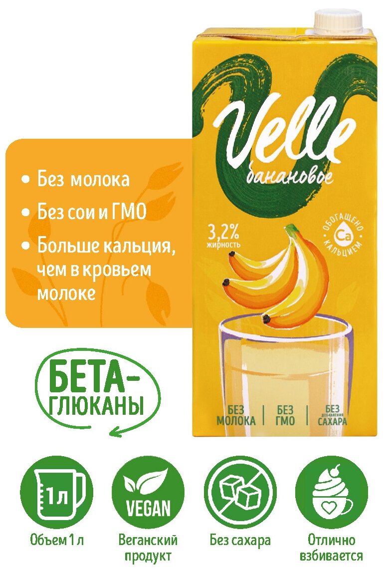 Купить Velle/Напиток овсяный со вкусом Банана, 1л