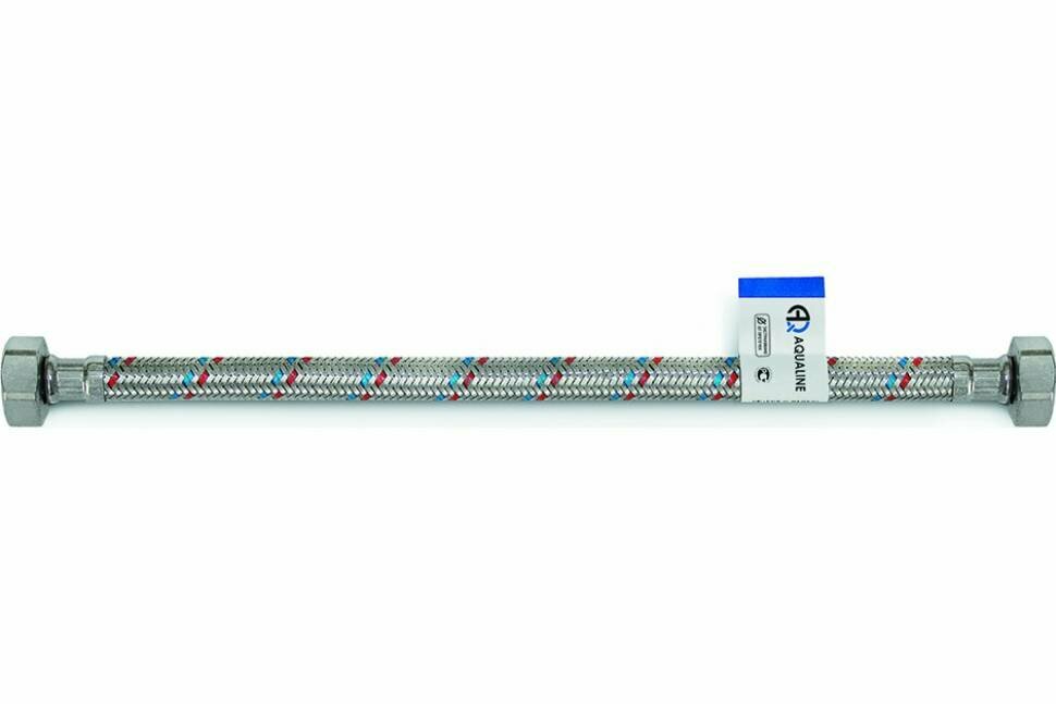 AQUALINE Подводка гибкая для воды с нак.гайками-латунь,стальная оплетка 1/2"-50см,(вн-вн, г/г),1414