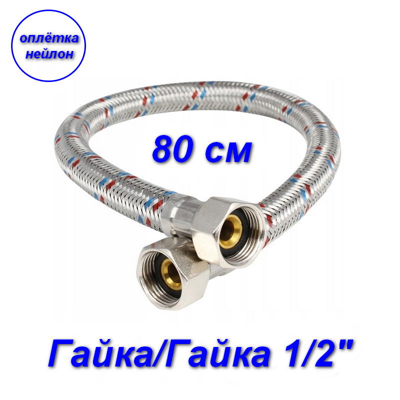 Купить AQUALINE Подводка гибкая для воды нейлон/ПВХ (стальная гайка) (вн-вн, г/г) 1/2" - 80 см, 4864