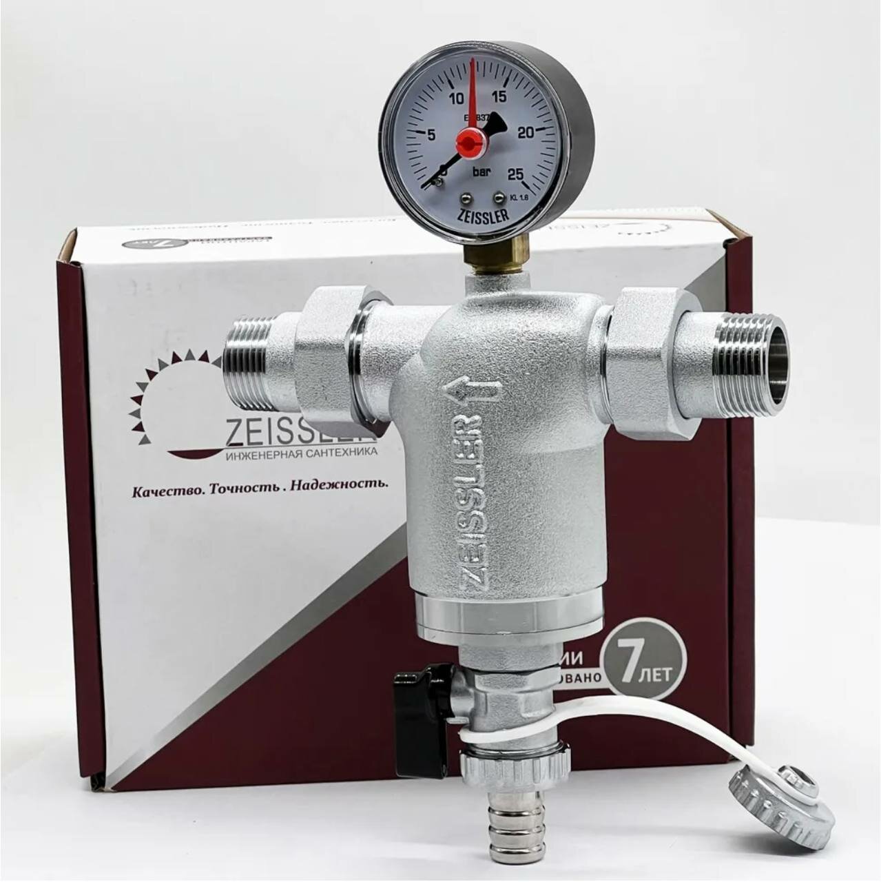 Фильтр с поворотным соединением c манометром, присоединение - американки, промывной,1/2" ZEISLLER, ZSf.303.0104N