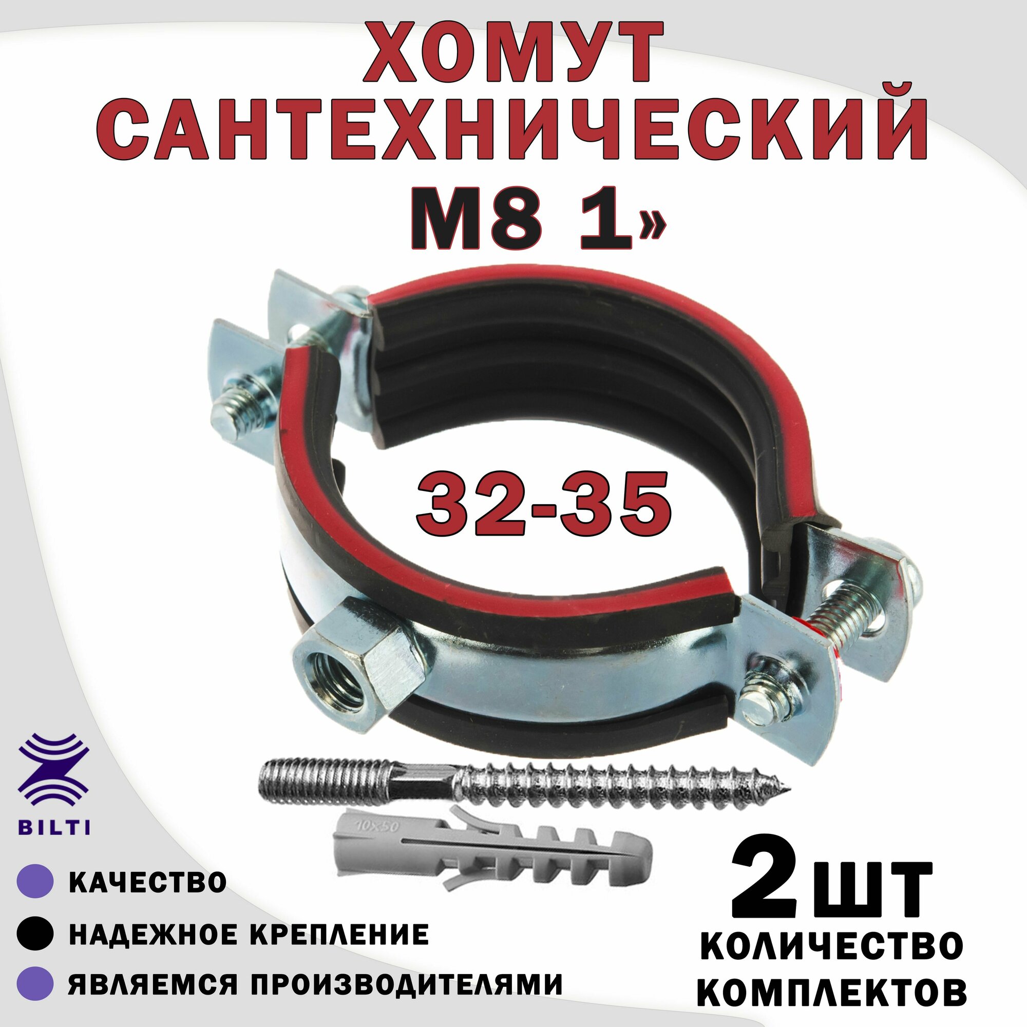 Хомут сантехнический М8 1" (32-35) оцинкованный, с резиновым уплотнителем, с шурупом и дюбелем, для монтажа труб интересное: