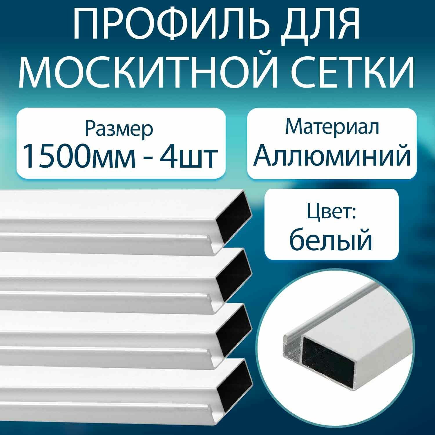 Купить Профиль для москитной сетки алюминиевый белый 1500мм - 4шт