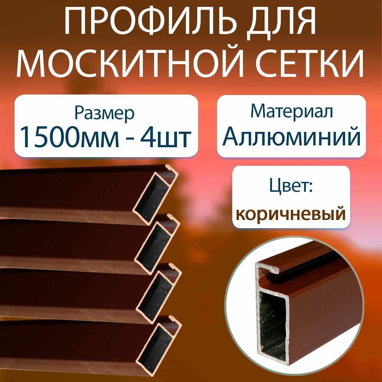 Купить Профиль для москитной сетки алюминиевый коричневый 1500мм - 4шт
