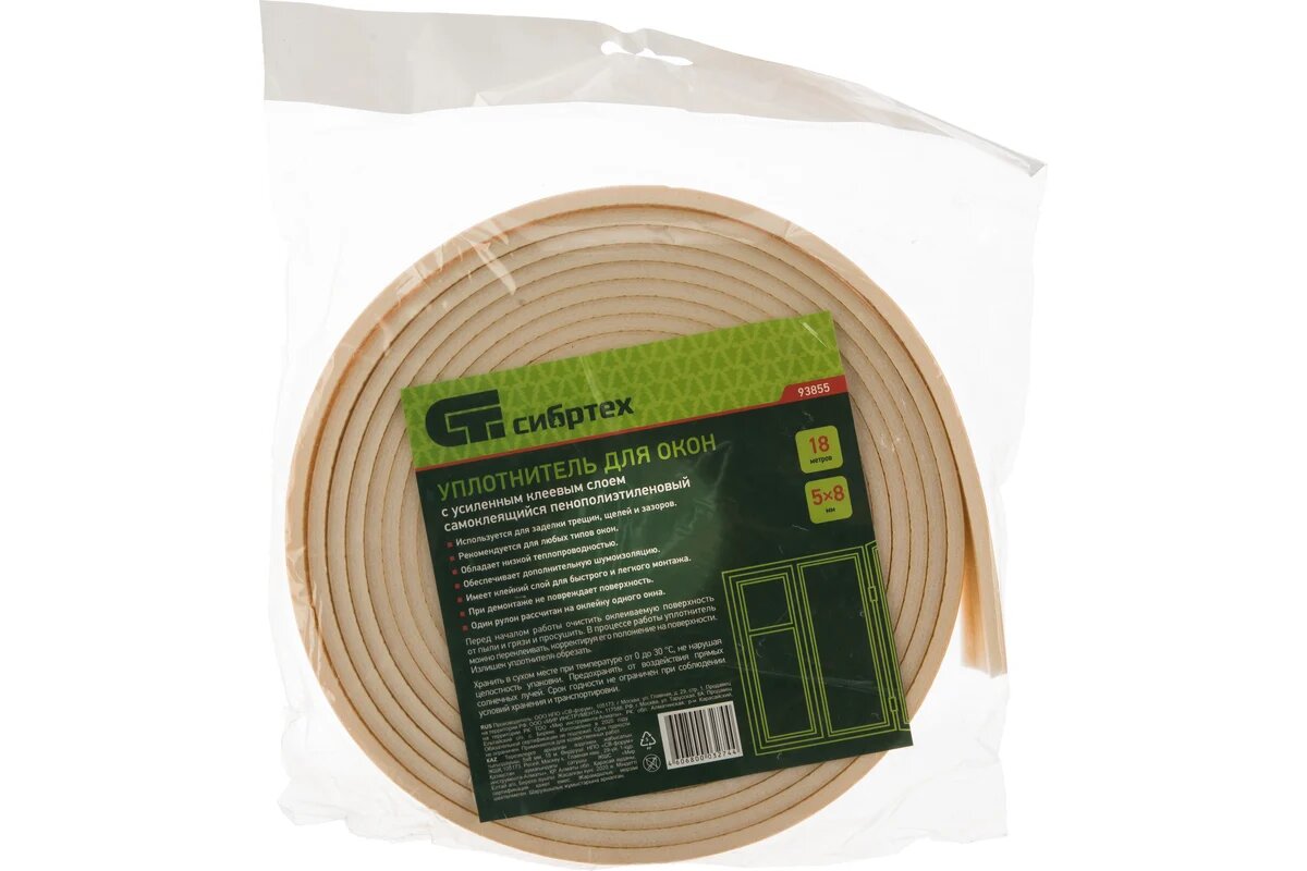 Уплотнитель для окон со скотчем Сибртех 5х8 мм, 18 м 93855
