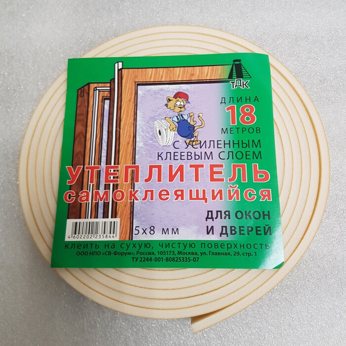 Уплотнитель для окон со скотчем, 5 х 8 мм, 18 м Россия Сибртех интересное: