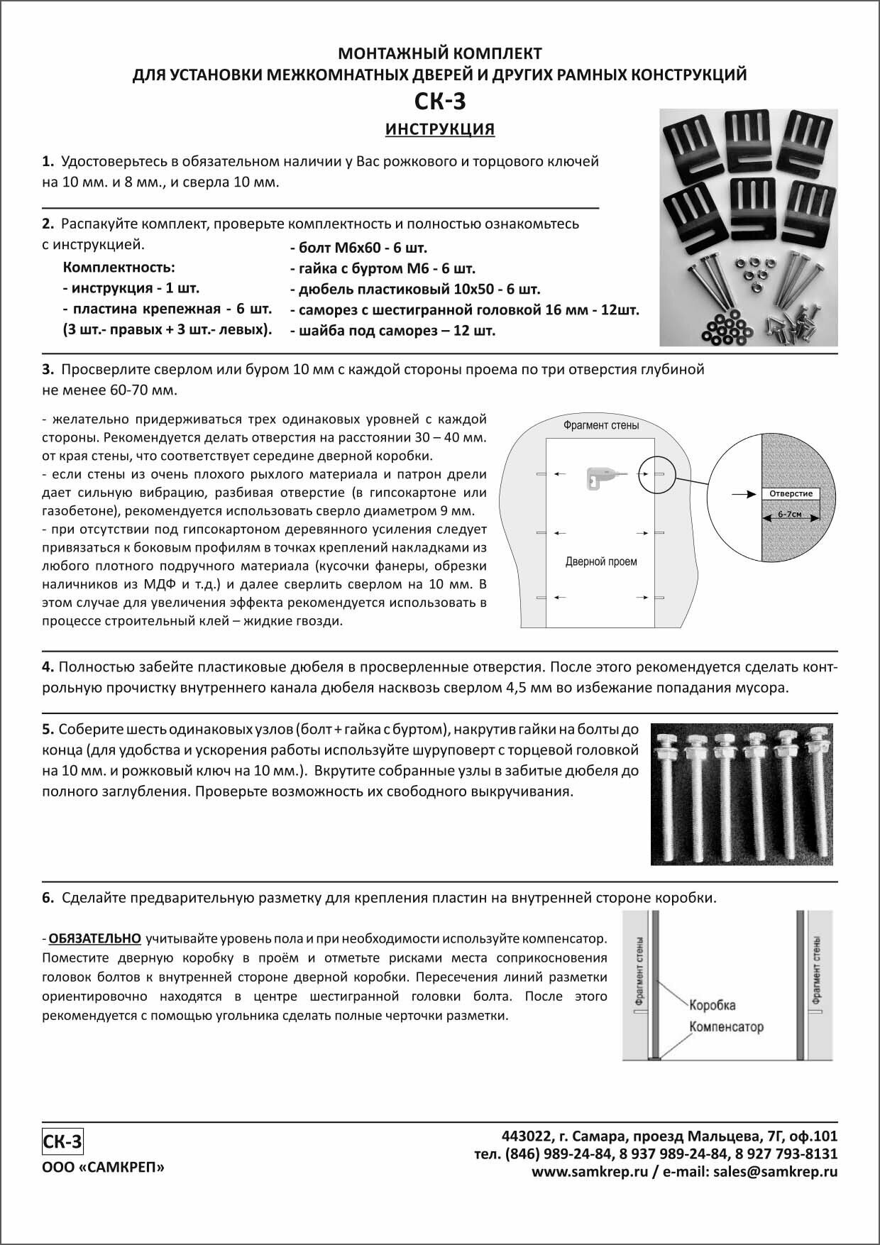 Монтажный комплект для установки дверей СК-3, 5 компл.