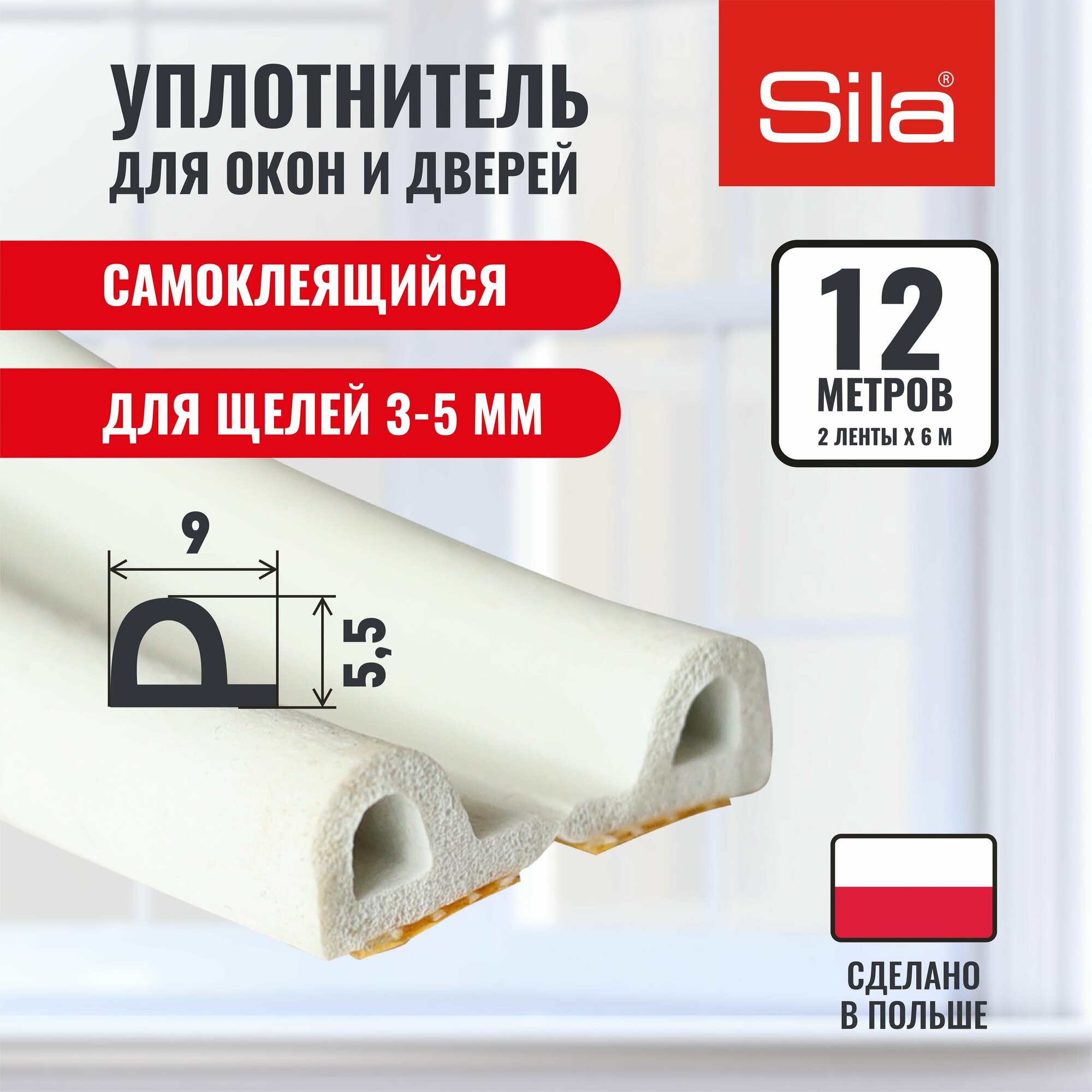 Купить Уплотнитель для окон и дверей SILA P-профиль, 9х5,5мм, 12 метров (2х6м), белый, самоклеящийся SILAPW12