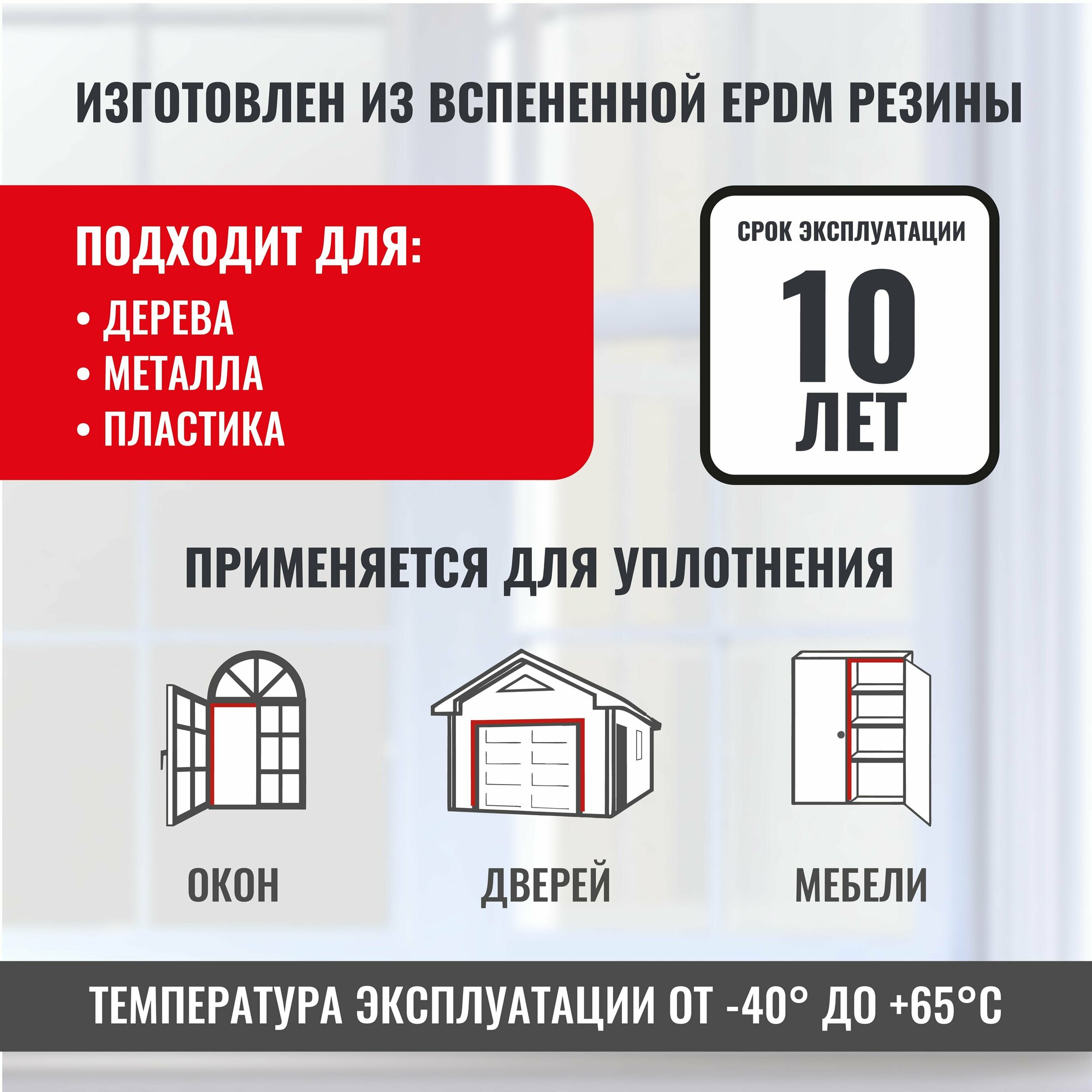 Уплотнитель самоклеящийся профиль "D" 9х7.4мм длина 6м(2х3м) черный, для окон и дверей