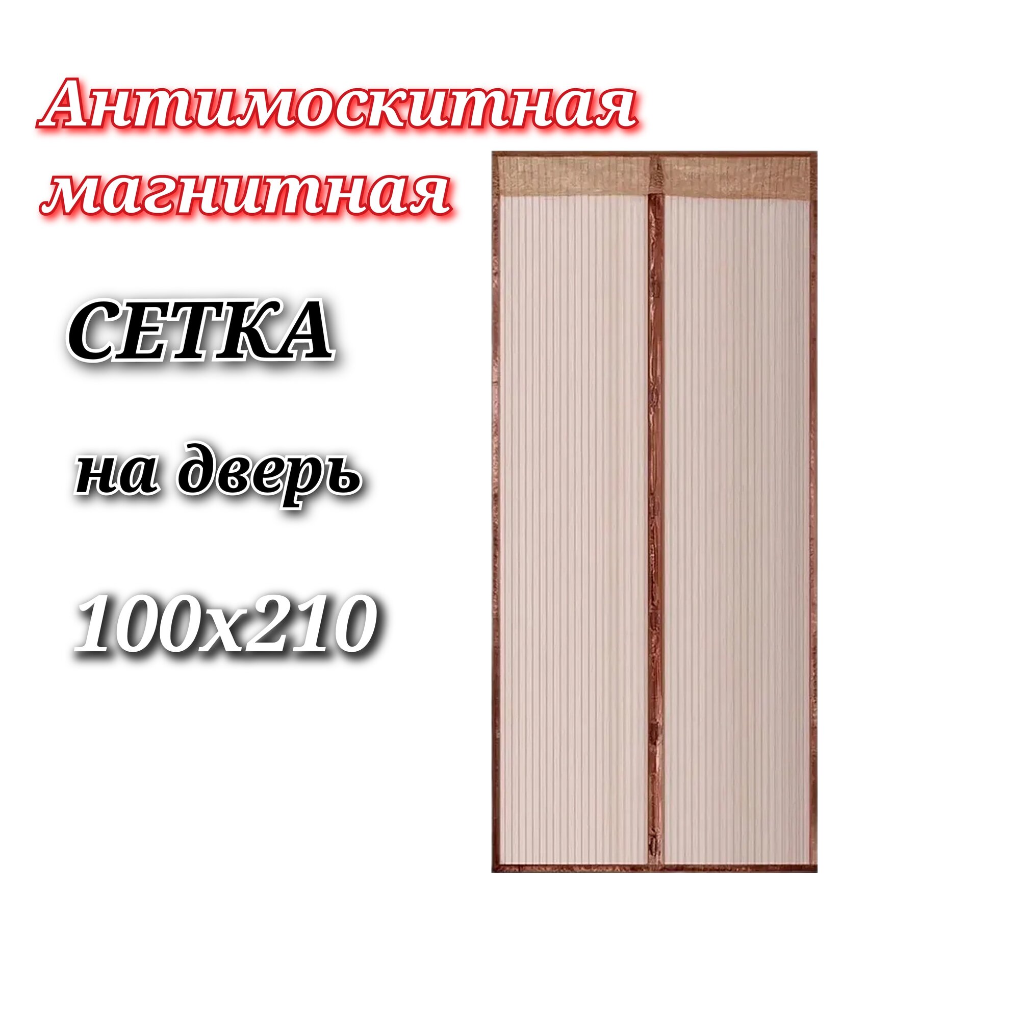 Купить Москитная сетка на дверь на магнитах , антимоскитная шторка 100х210 , коричневая , с кнопками , занавеска на магнитах раздвижная от комаров и мух