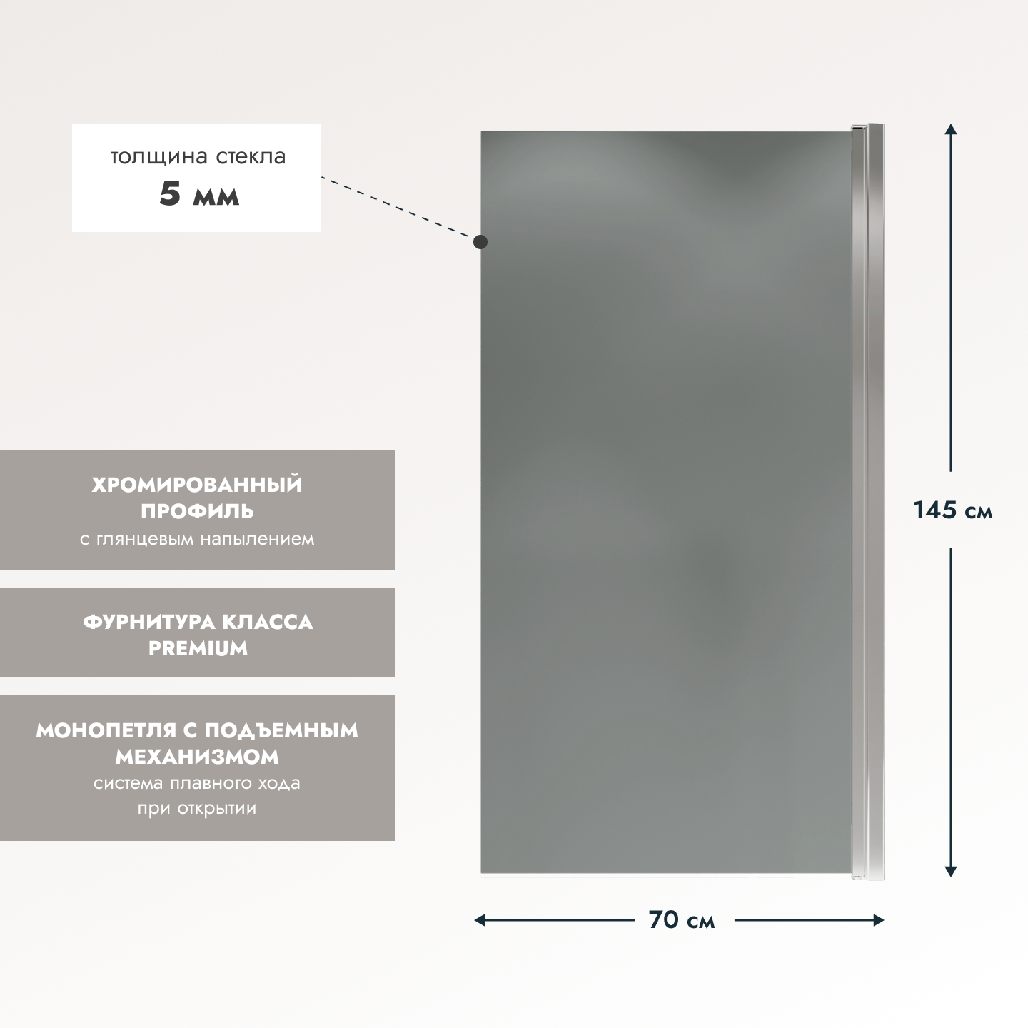 Стеклянная перегородка (шторка, ширма) на борт ванны поворотная на монопетле хромированный профиль тонированное стекло интересное: