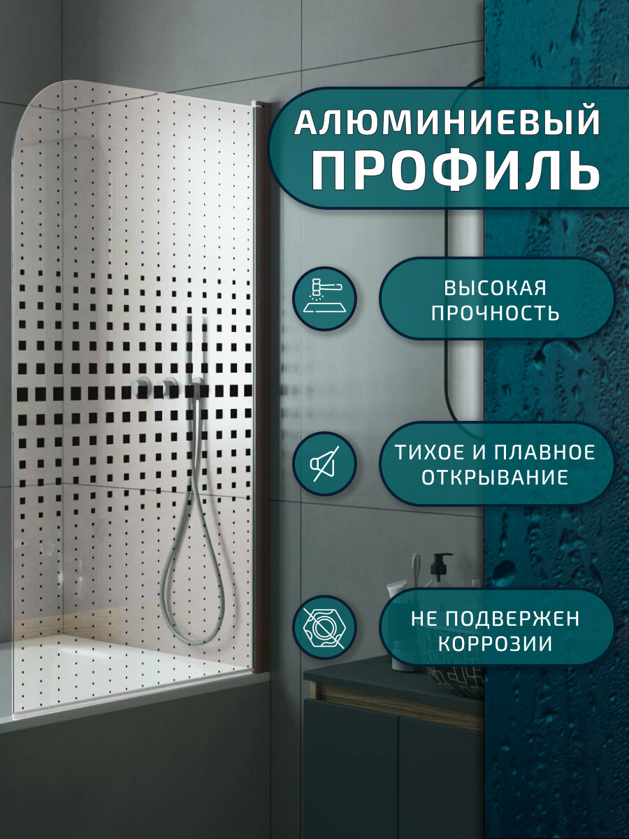 Шторка для ванны Abber Immer Offen 100x140 AG72100B профиль черный, стекло с рисунком