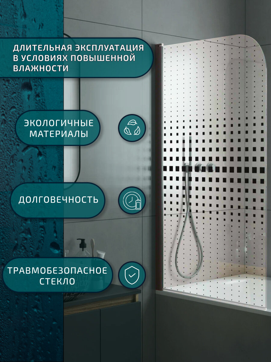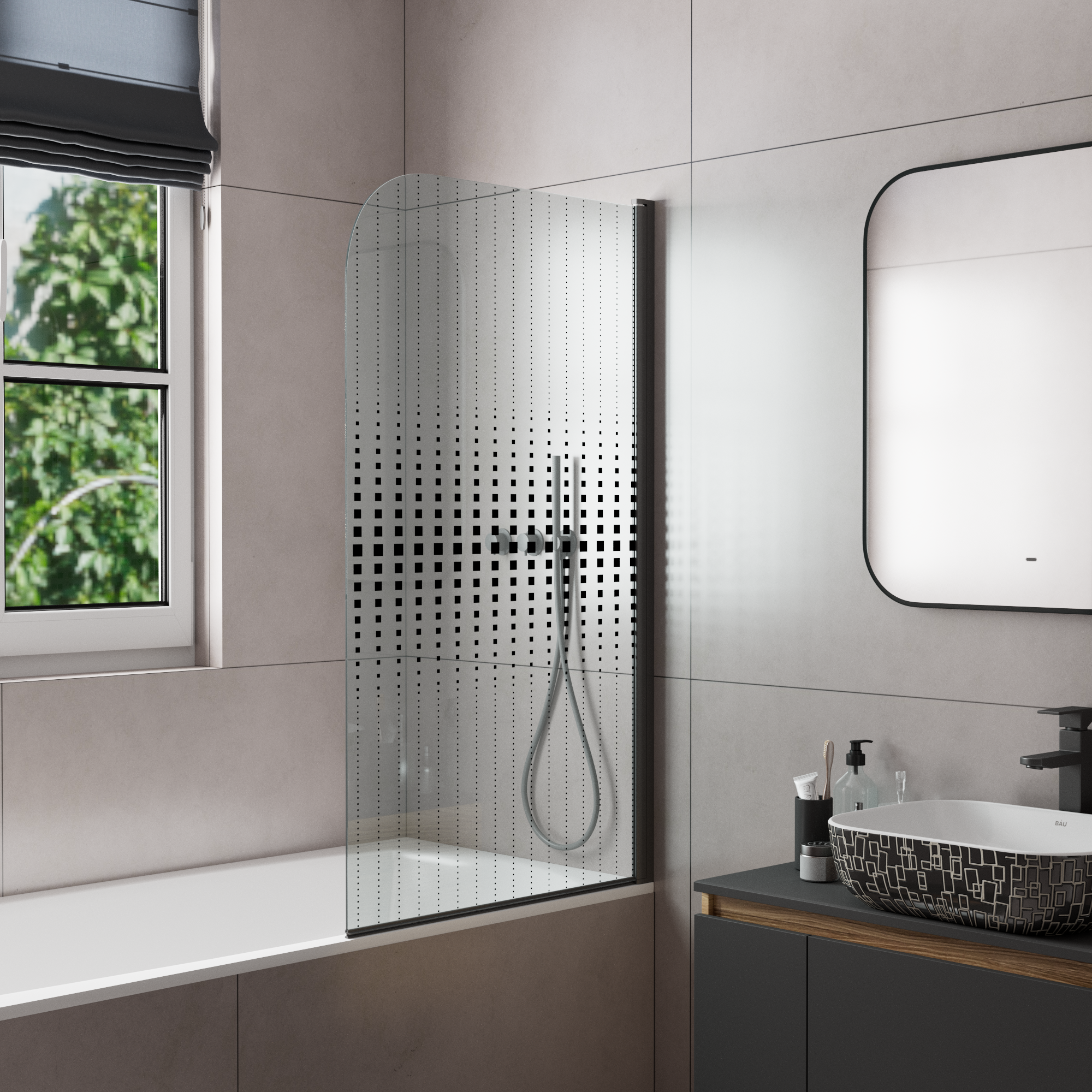 Шторка на ванну BAU Dream поворотная 140x80, прозрачное закаленное стекло 6 мм с черная мозаика, черный матовый профиль интересное: