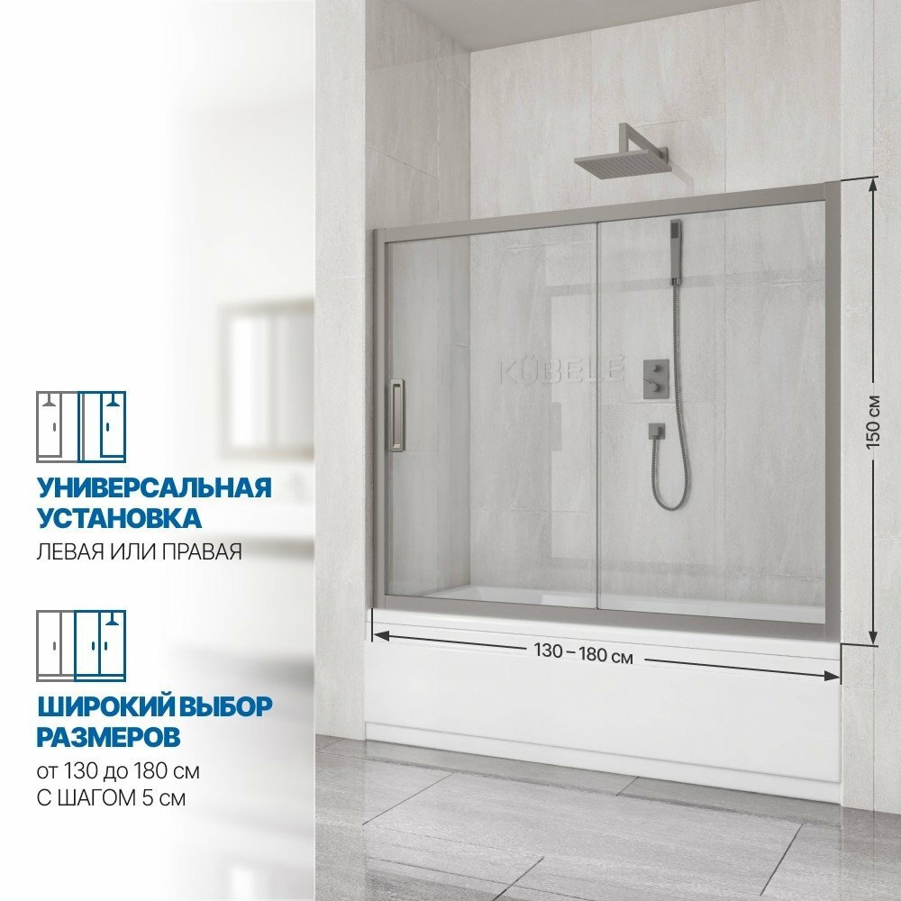 Шторка на ванну GWMPKB019P2 130x150 см, цвет фурнитуры хром матовый, цвет стекла бесцветный, стекло закаленное 6 мм, открывание двери левое / правое