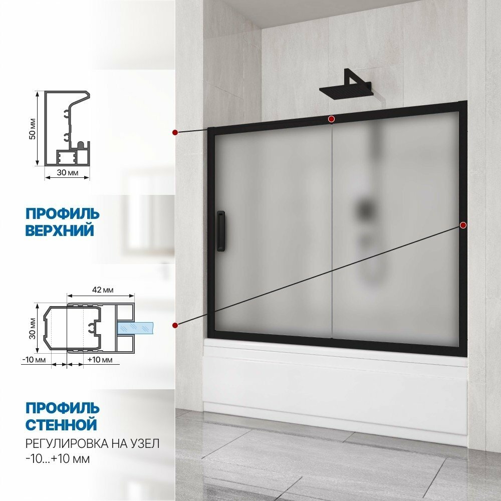 Шторка на ванну GWMPKB019P2 155x150 см, цвет фурнитуры черный матовый, цвет стекла матовый, стекло закаленное 6 мм, открывание двери левое / правое
