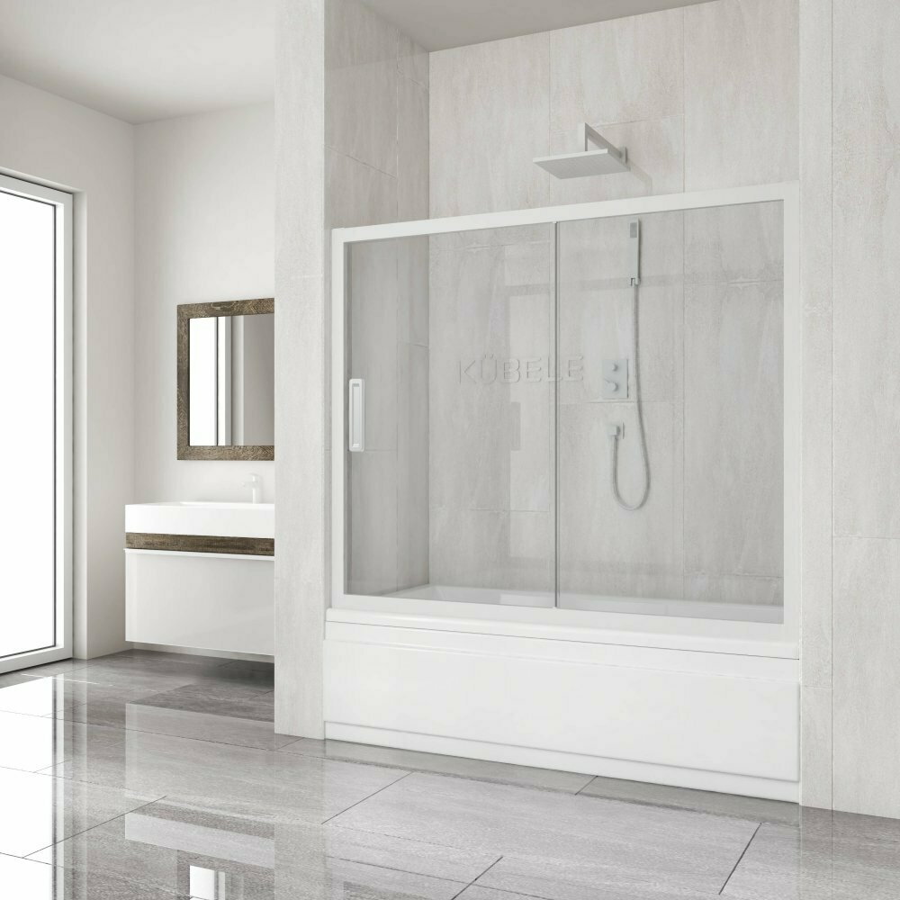 Шторка на ванну GWMPKB019P2 155x150 см, цвет фурнитуры белый матовый, цвет стекла бесцветный, стекло закаленное 6 мм, открывание двери левое / правое