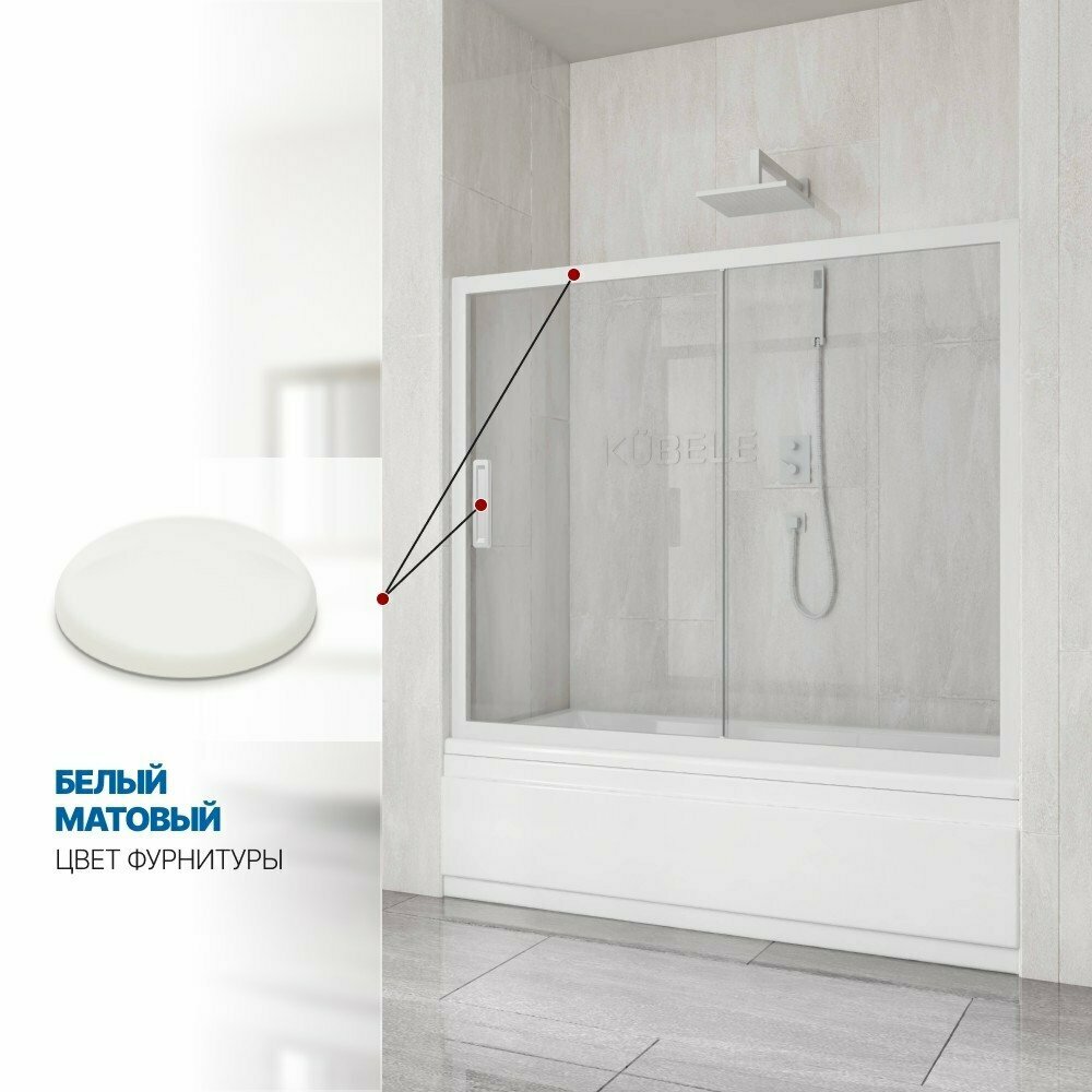 Шторка на ванну GWMPKB019P2 140x150 см, цвет фурнитуры белый матовый, цвет стекла бесцветный, стекло закаленное 6 мм, открывание двери левое / правое