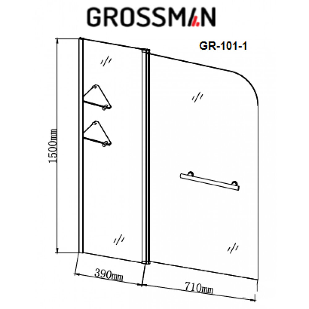 Шторка на ванну Grossman 110 GR-101/1 профиль Хром стекло прозрачное