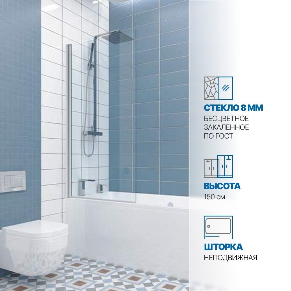 Шторка на ванну GWMPLP61ASQ 80x150 см, цвет фурнитуры хром блестящий, цвет стекла бесцветный, стекло закаленное 8 мм