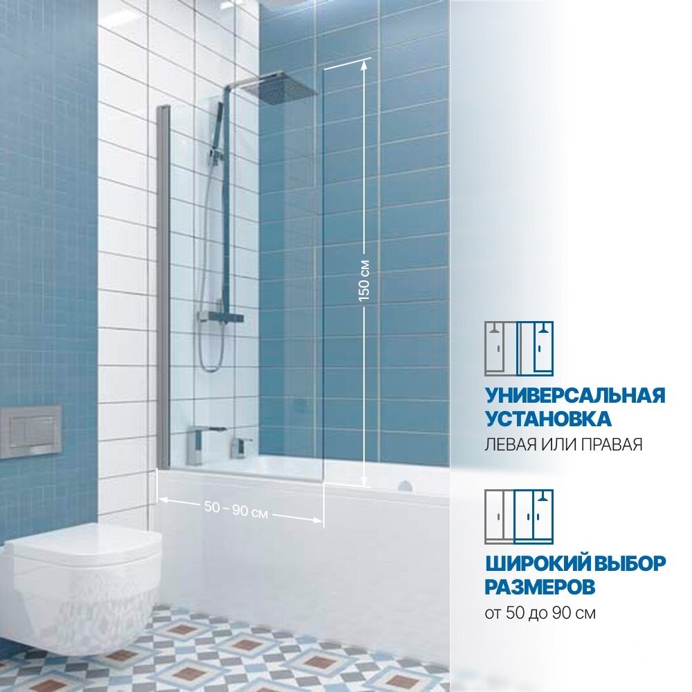 Шторка на ванну GWMPLP61ASQ 90x150 см, цвет фурнитуры хром блестящий, цвет стекла бесцветный, стекло закаленное 8 мм