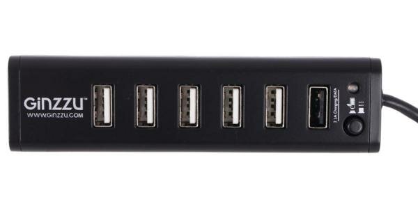 Ginzzu Разветвитель 6 портов USB2.0 + 1 порт USB3.0 Ginzzu GR-315UAB, внешн., с блоком питания (ret)