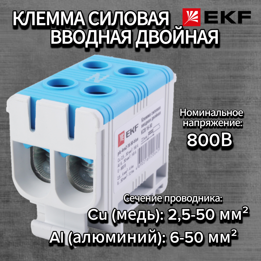 Клемма силовая вводная двойная EKF КСВ 16-50 16-50 мм цвет синий
