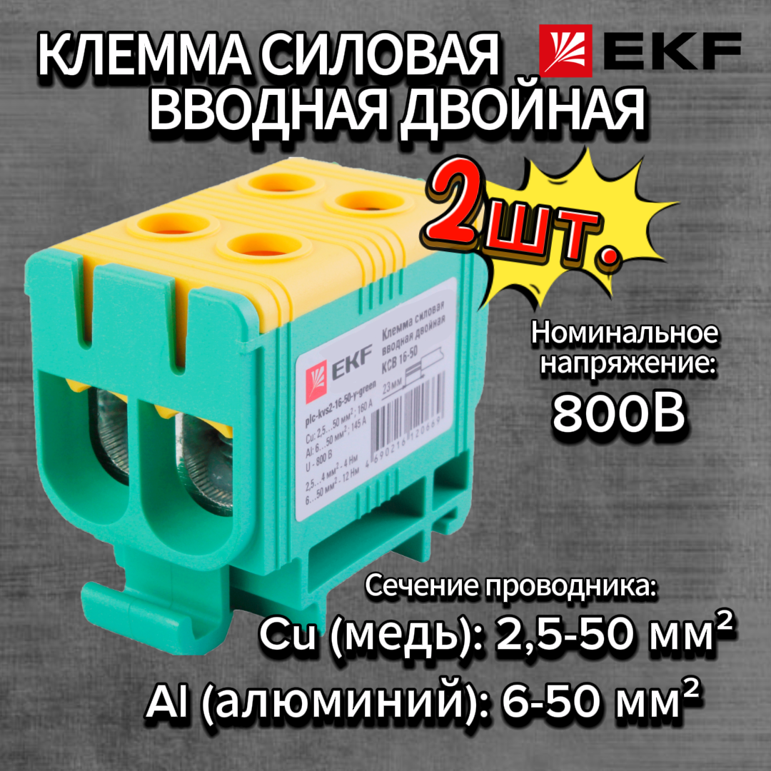 Клемма силовая вводная двойная EKF КСВ 16-50 16-50 мм цвет синий