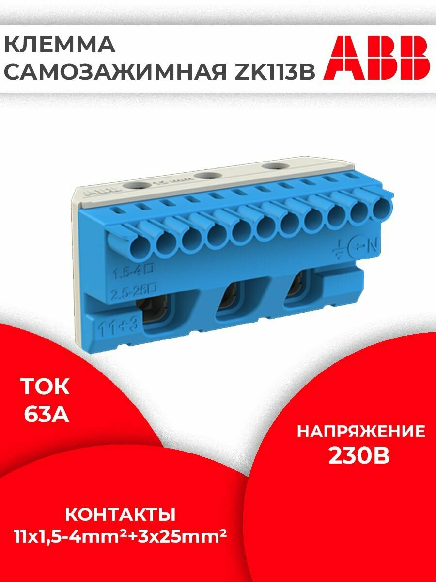 Abb LUC Клеммник самозажимной N11x4+3x25мм ZK113B