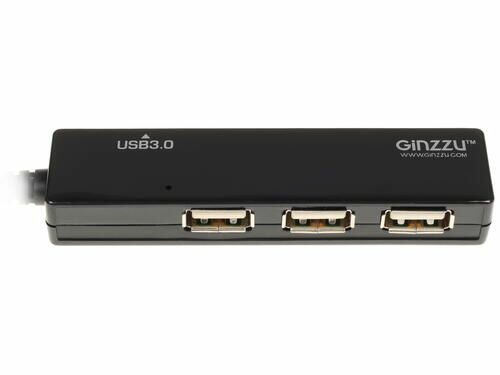 Разветвитель USB GiNZZU Gr-334ub, 4 порта (1xUSB 3.0 + 3xUSB 2.0) черный