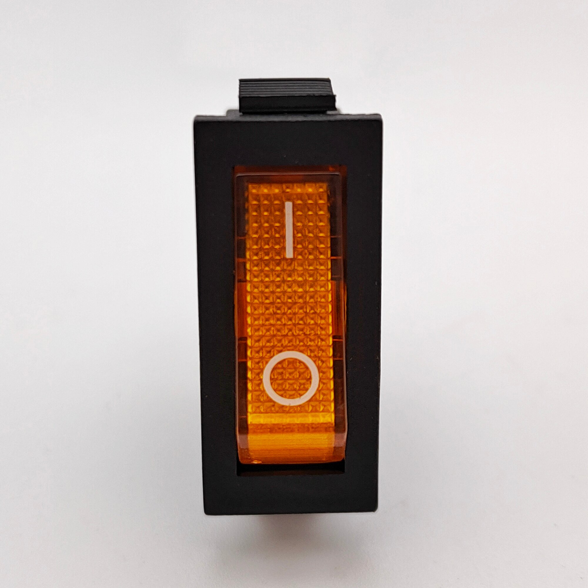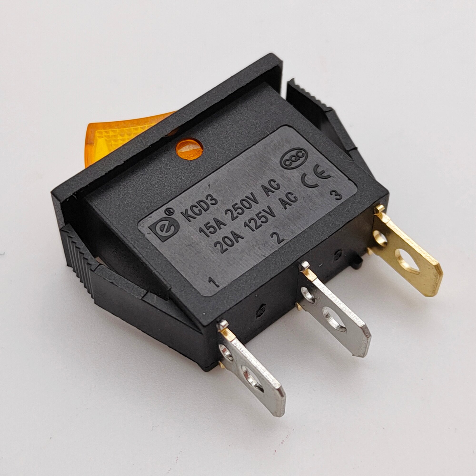 Купить Выключатель клавишный 250В 15А (3с) ON-OFF желтый узкий с подсветкой KCD3 (+ клеммы и термоусадка)